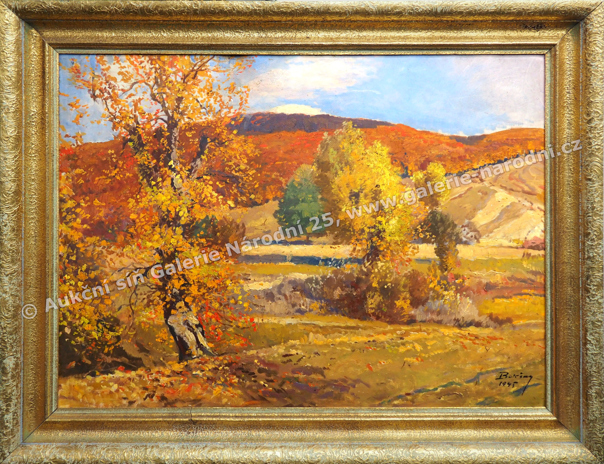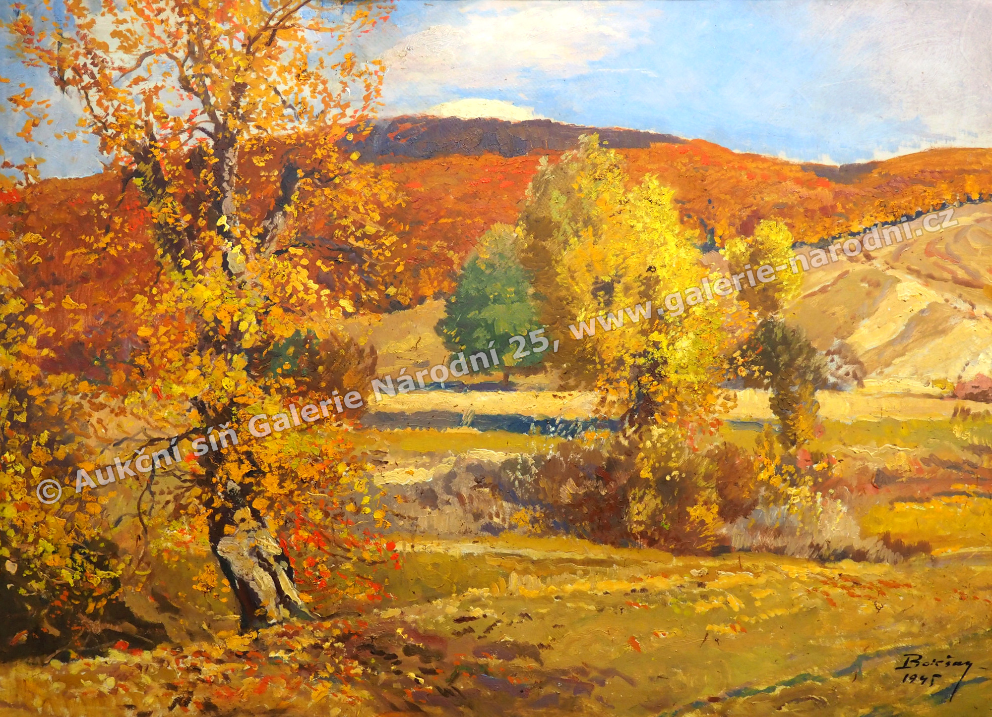 olej na kartonu, 70 x 95 cm, rámováno, rám a malba mírně poškozeny, signováno PD, datováno 1945, ověřovací certifikát pravosti díla přiložen