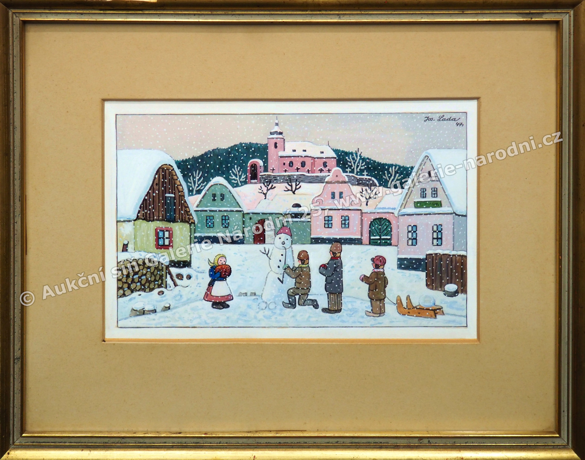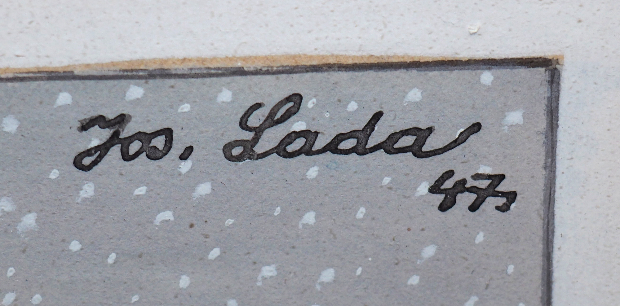 akvarel - kvaš na kartonu, rozměry ve výřezu pasparty 19, 5 x 30, 5 cm, rámováno, zaskleno, pasparta, rám mírně poškozen, signováno PH, datováno 1947