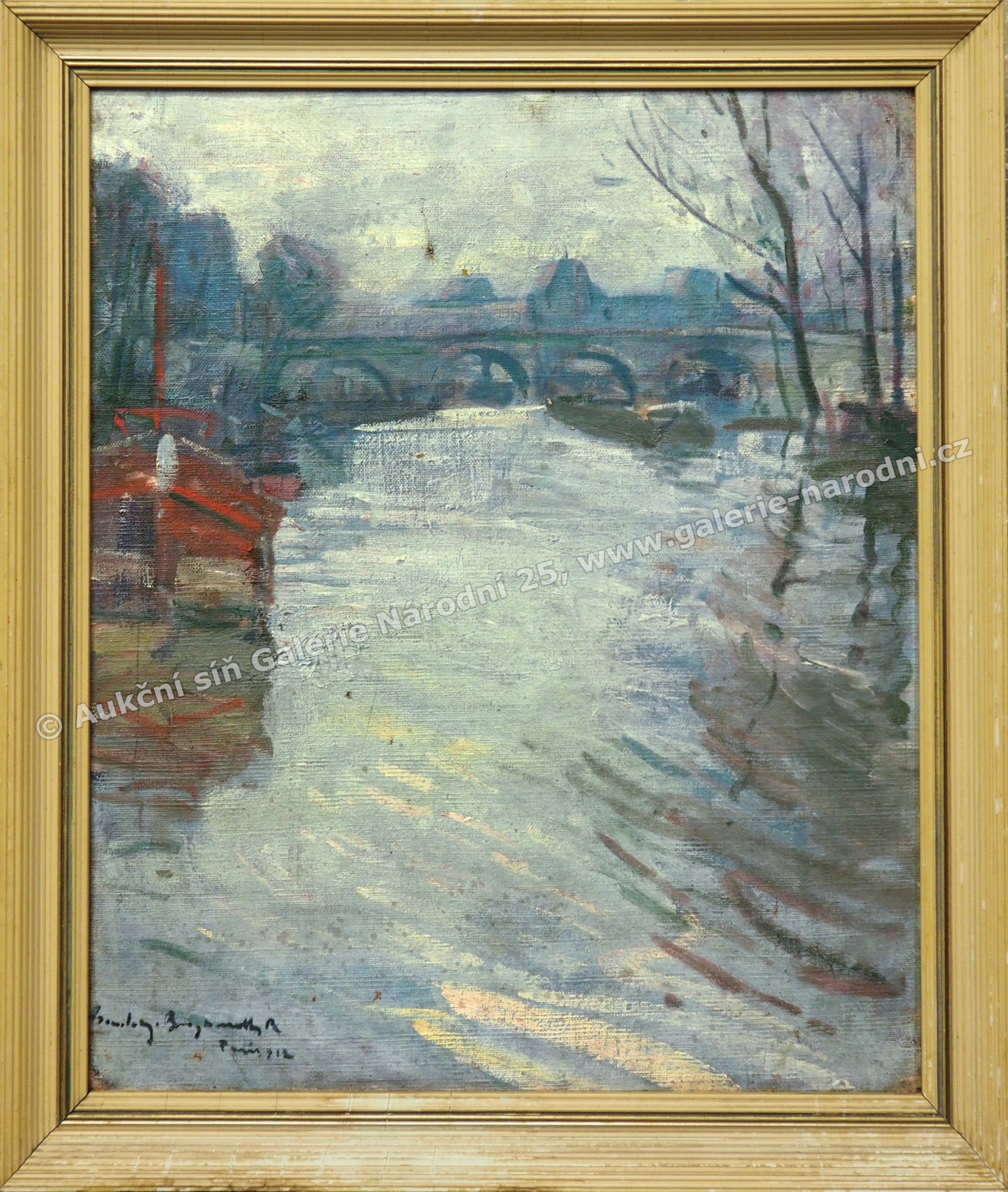 olej na plátně, 54 x 46 cm, rámováno, rám a malba místy poškozeny, signováno nečitelně LD, datováno 1912
