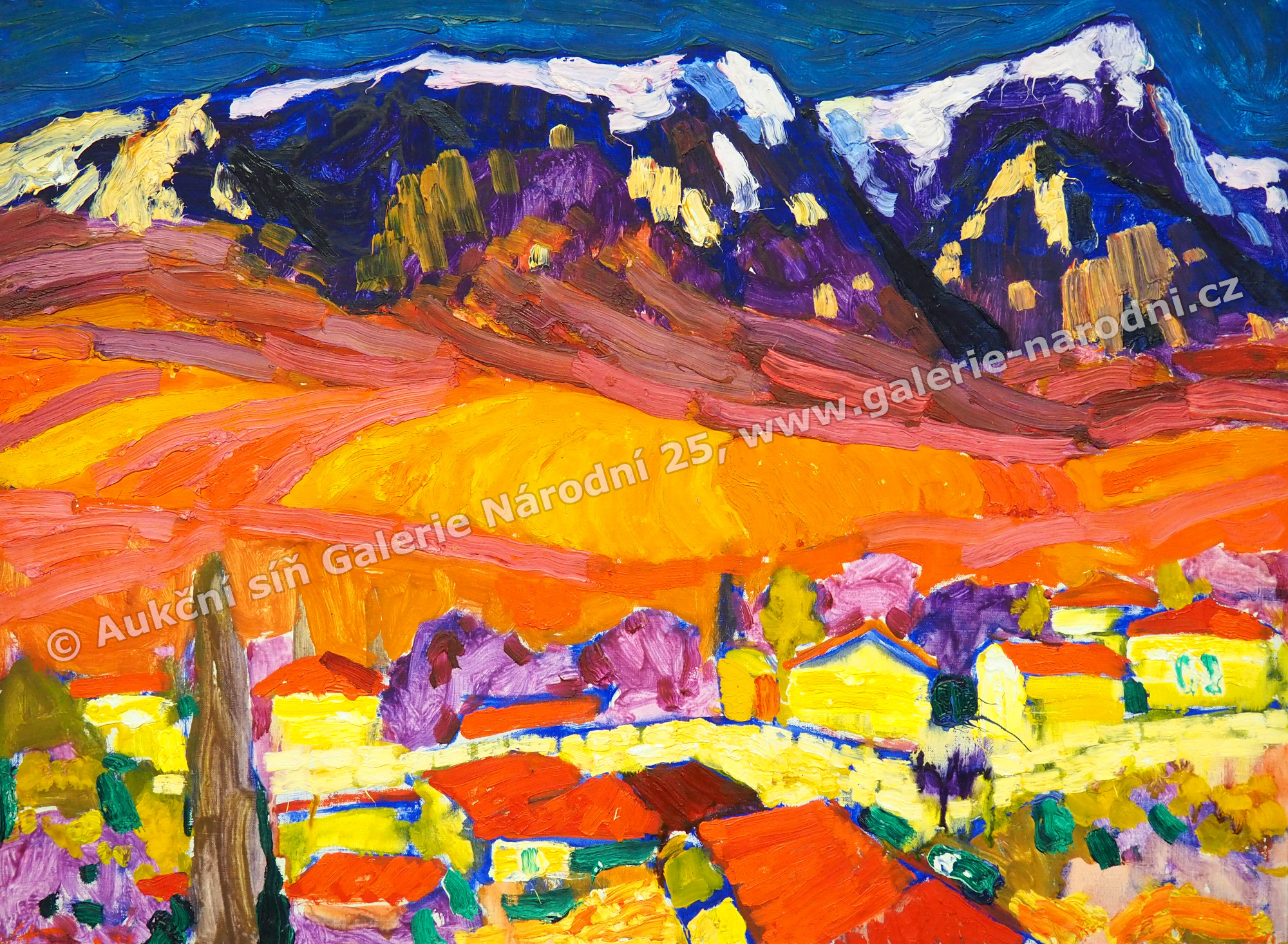 olej na kartonu, 43 x 57 cm, rámováno, signováno LD, datováno 1978, přímý dar od autora, ověřovací certifikát pravosti díla přiložen