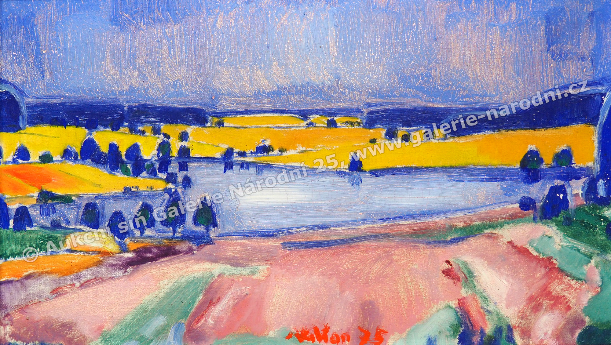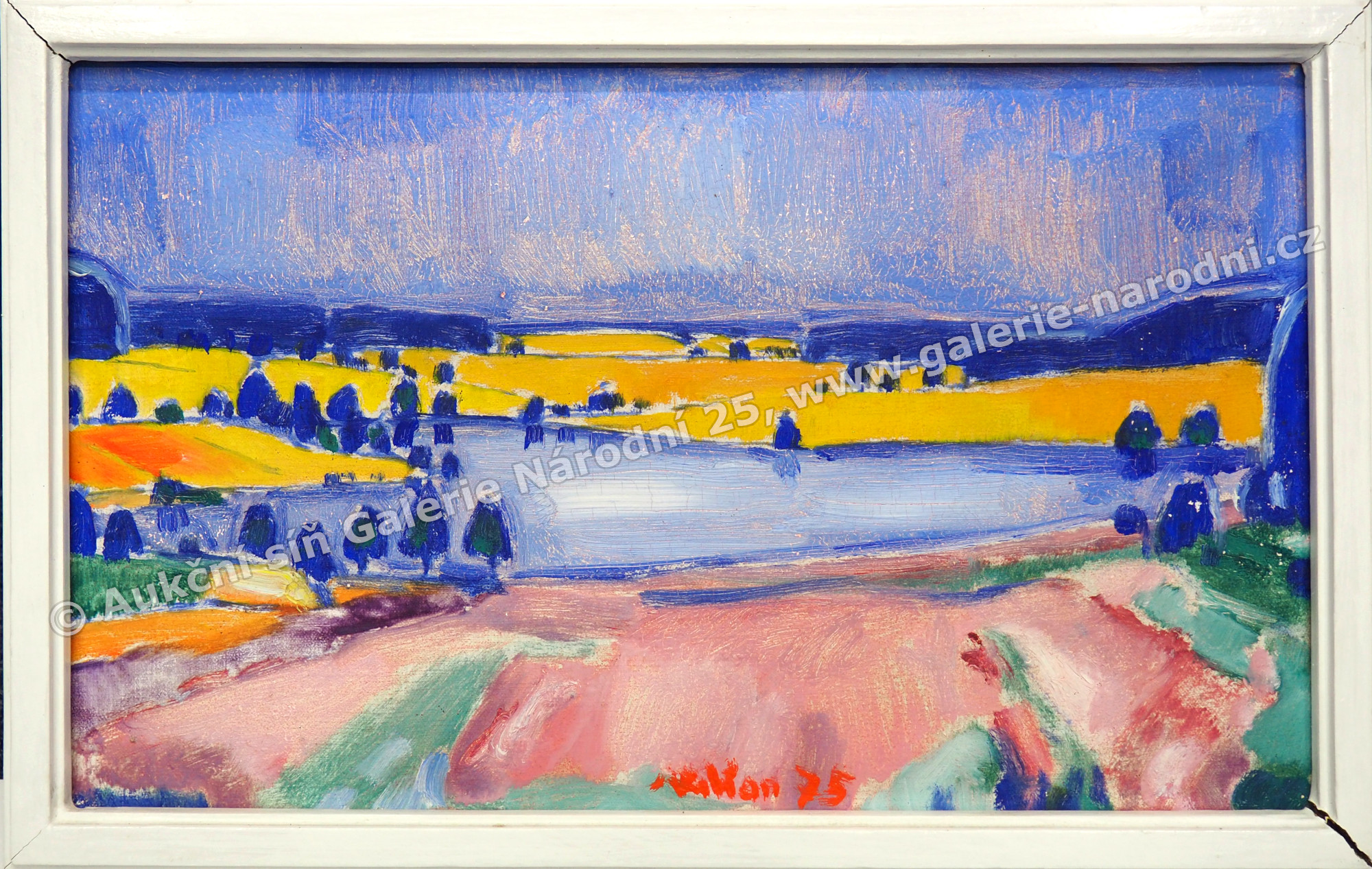 olej na plátně, 24 x 40 cm, rámováno, rám a malba mírně poškozeny, signováno UD, datováno 1975, ověřovací certifikát pravosti díla přiložen