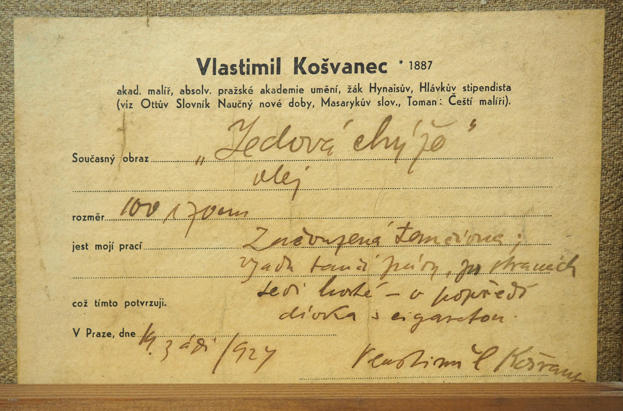olej na plátně, 68 x 97 cm, rámováno, rám a malba mírně poškozeny, signováno PD, datováno 1929, ověřovací certifikát pravosti díla přiložen