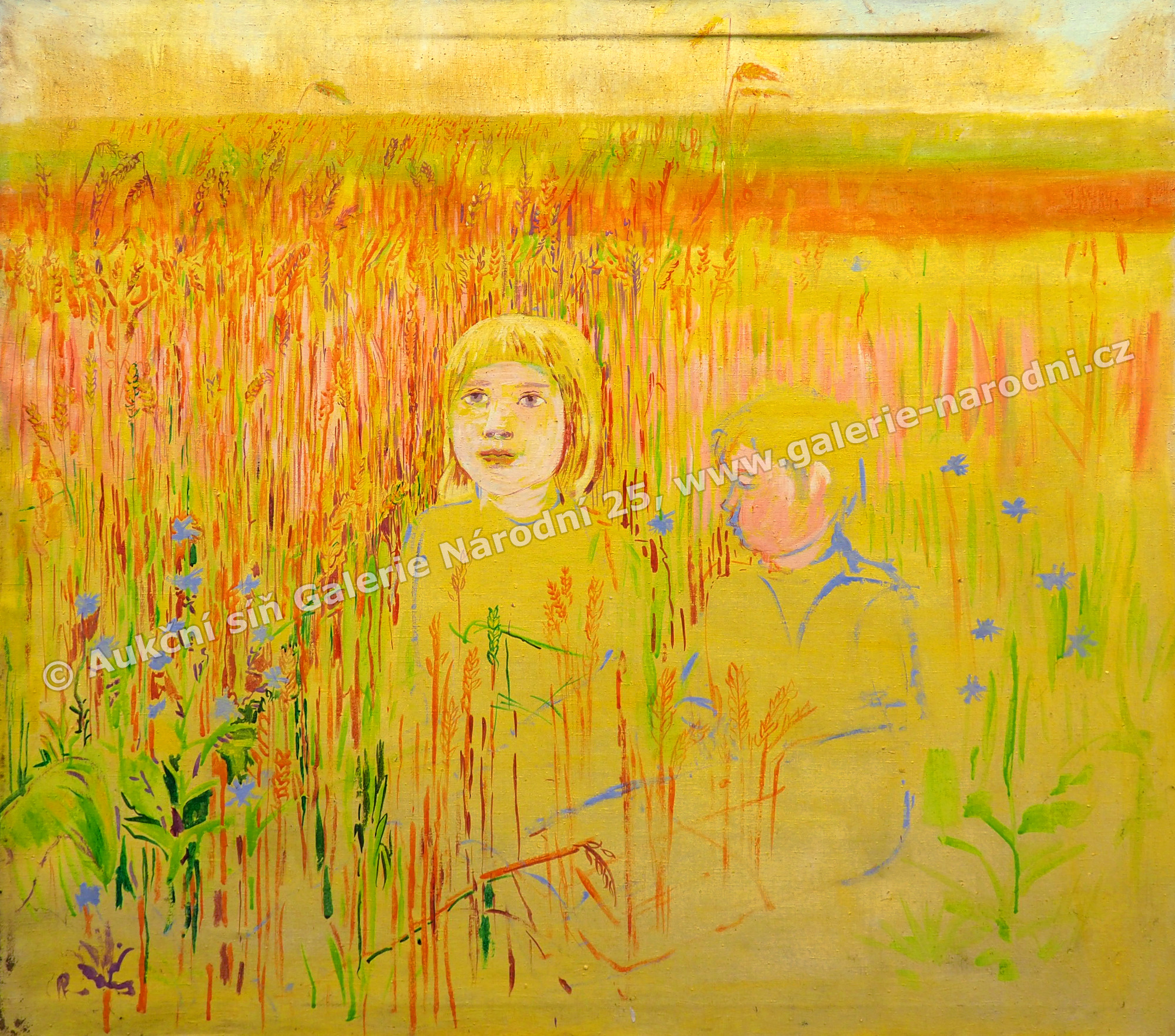 akryl na plátně, 116 x 125 cm, nerámováno, vypínací rám, malba a plátno místy poškozeny, obtisknutý vypínací rám v plátně, plátno místy mírně vybouleno, nesignováno, 60. - 70. léta 20. století