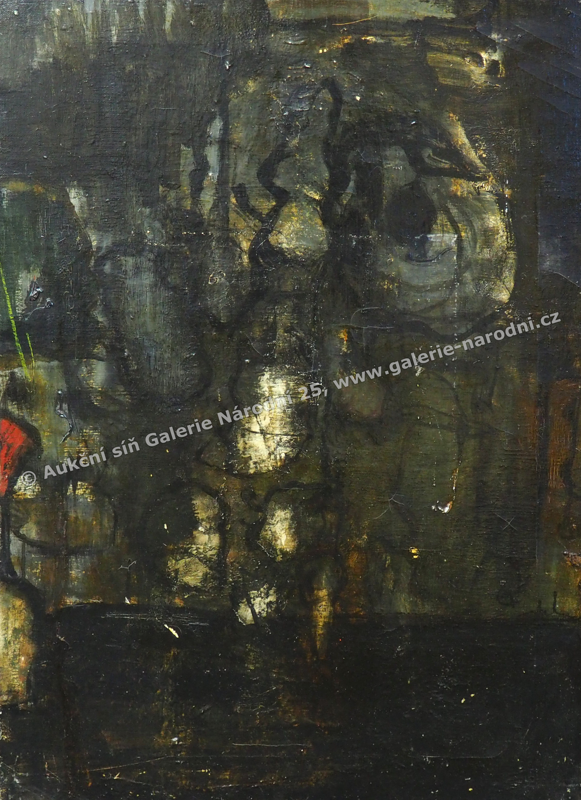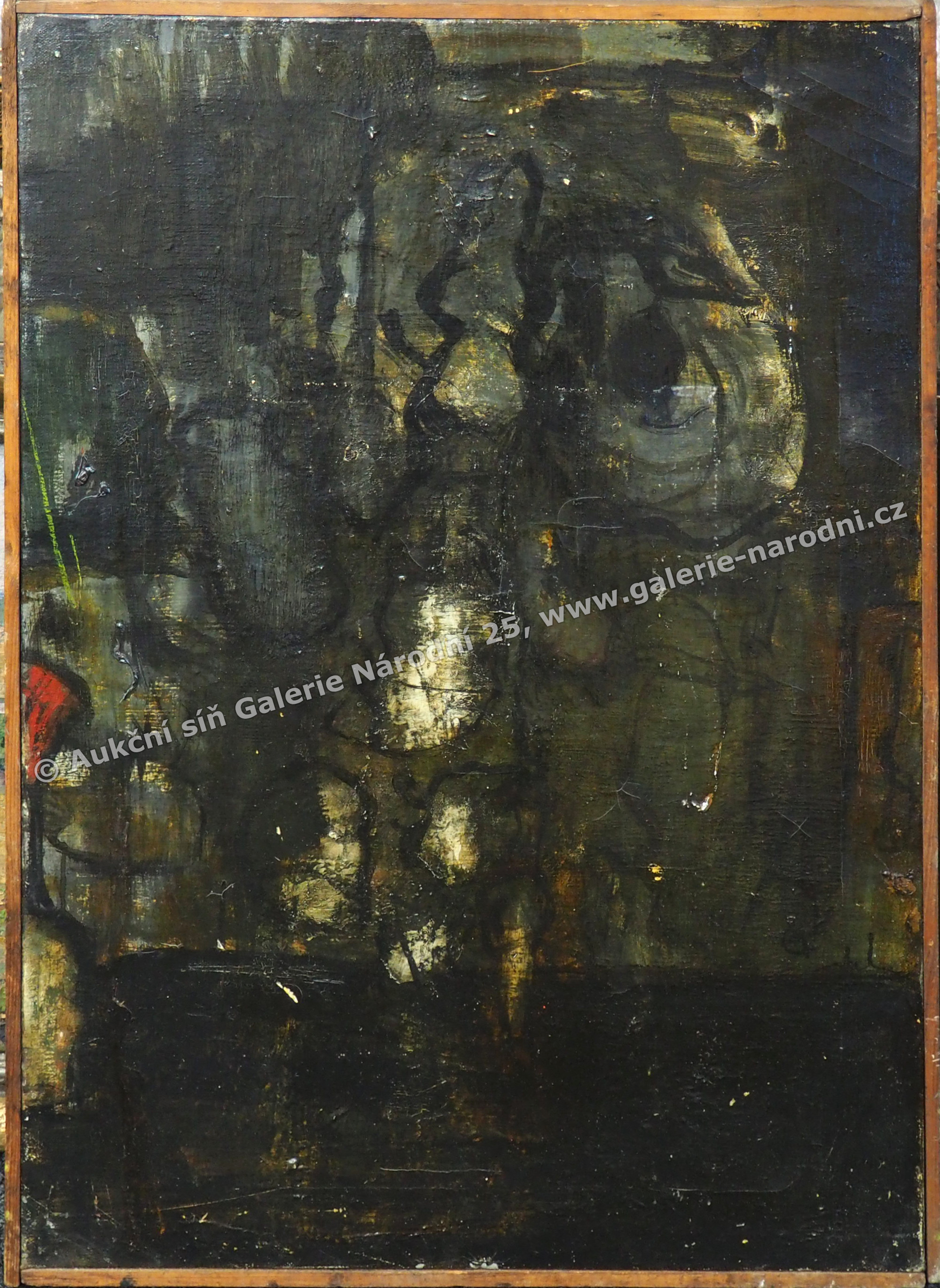 akryl na plátně, 81 x 63 cm, rámováno, rám a malba poškozeny, plátno místy vybouleno, nesignováno, 60. - 70. léta 20. století