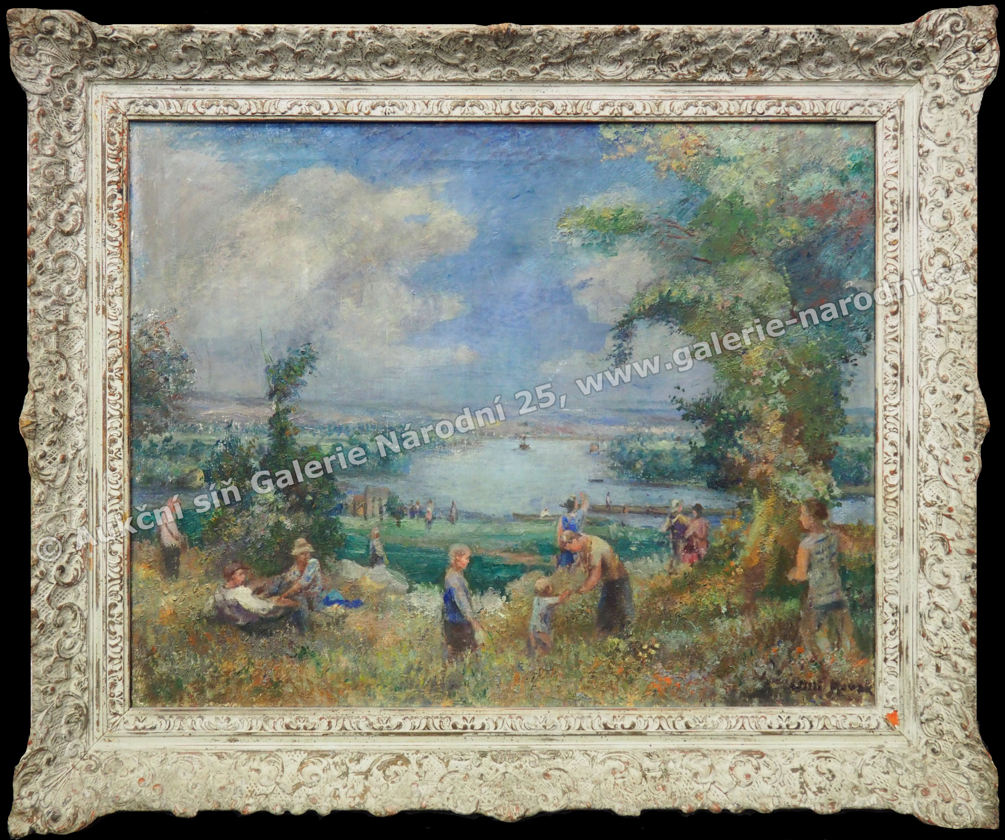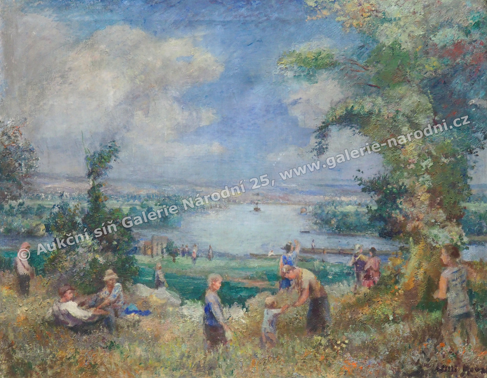olej na plátně, 60 x 75 cm, rámováno, rám a malba místy mírně poškozeno, plátno uprostřed mírně vybouleno, obtisknutý vypínací rám v plátně, signováno PD, 1. pol. 20. století, ověřovací certifikát pravosti díla přiložen