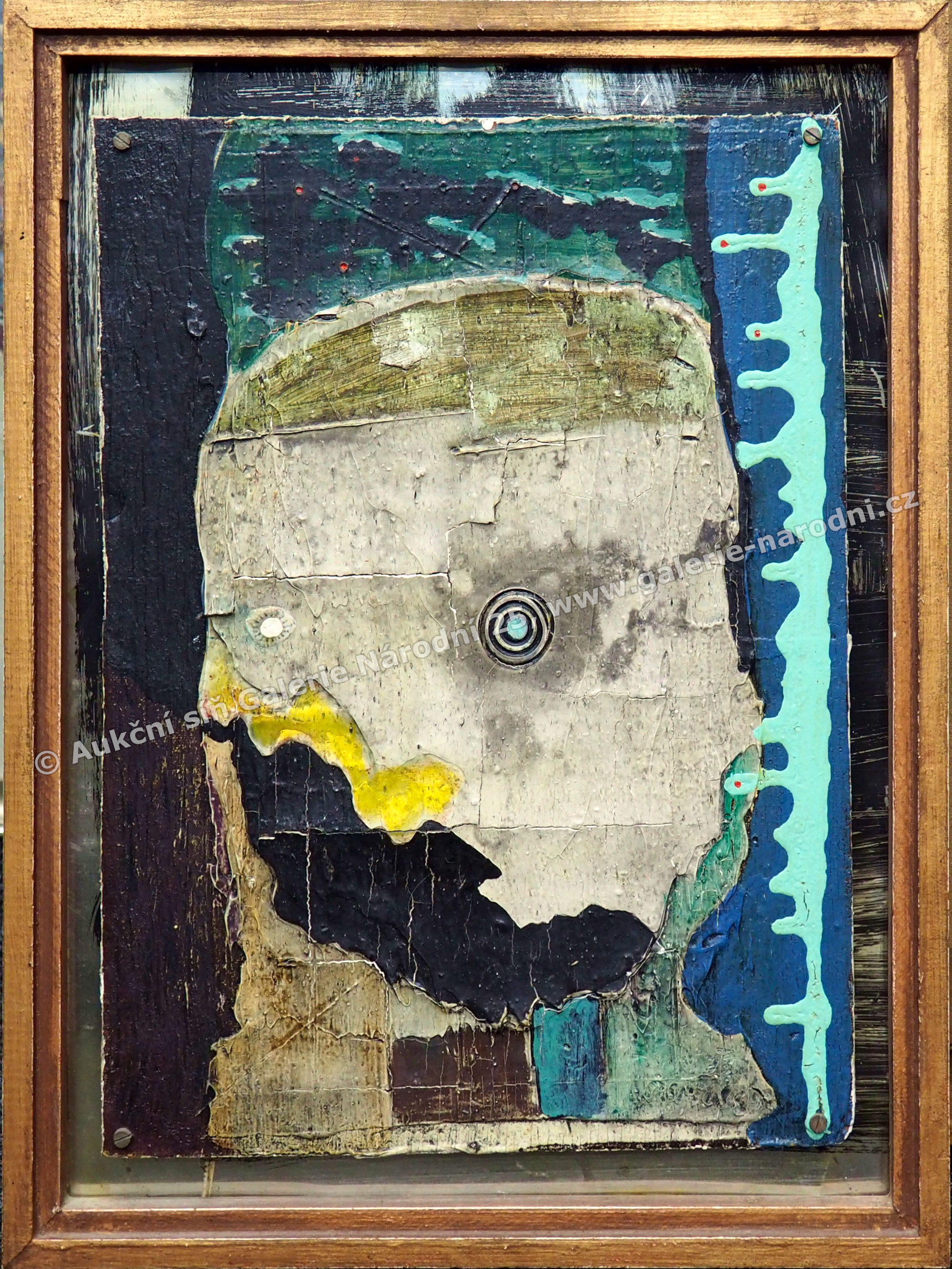 kombinovaná technika na překližce, 40 x 30 cm, rámováno, rám mírně poškozen, malba zkrakelována, signováno PD, 2. pol. 20. století