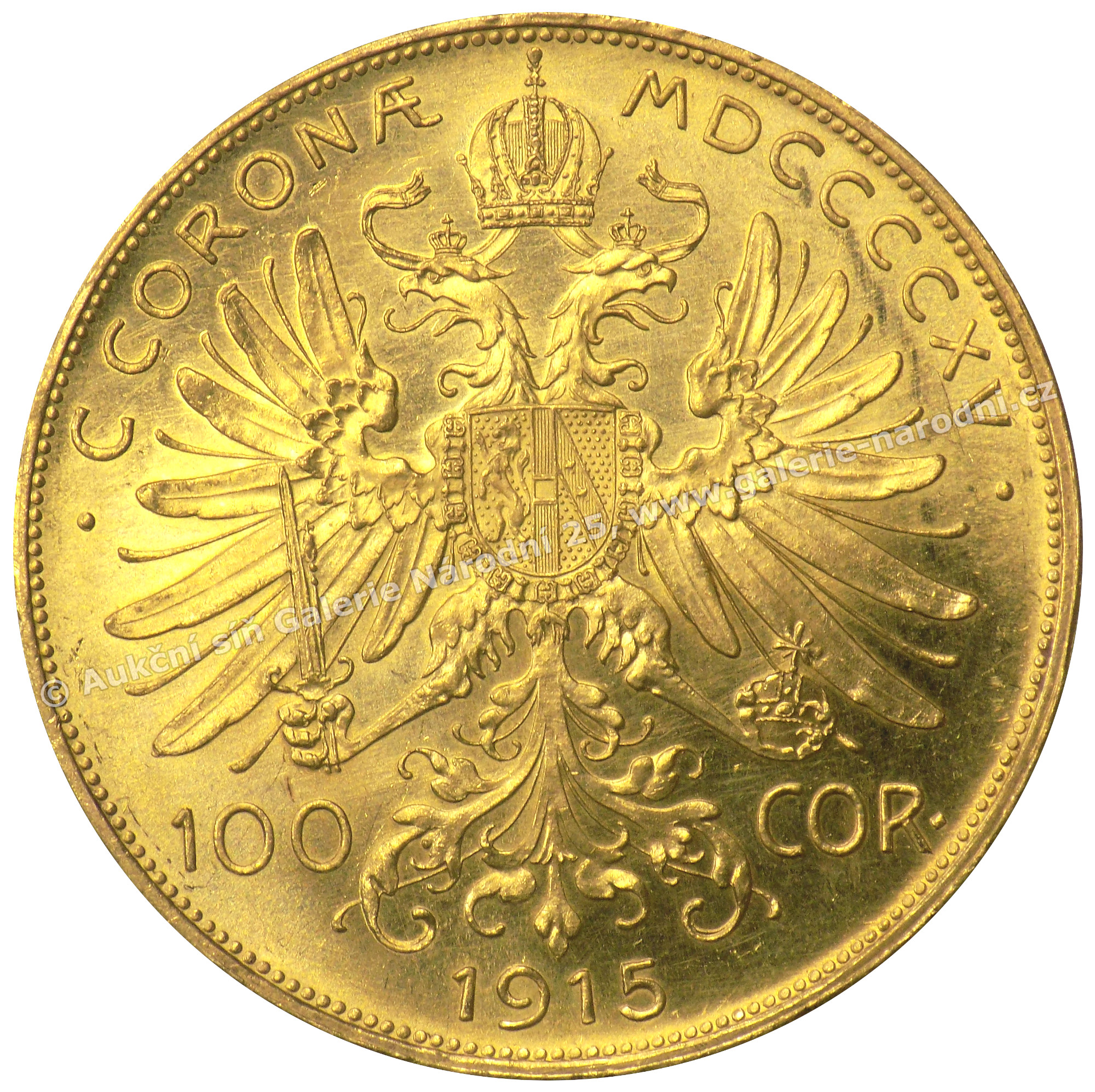 Au 900/1000, váha 33, 85 g, průměr 37 mm, rok 1915, mírné oťuky na hraně, mírné rysky na ploše