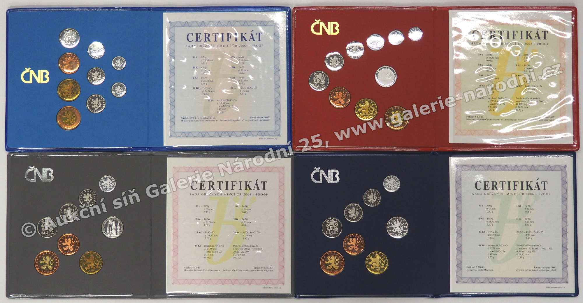 semišový obal, proof, ročníky 2002, 2003, 2004, 2006