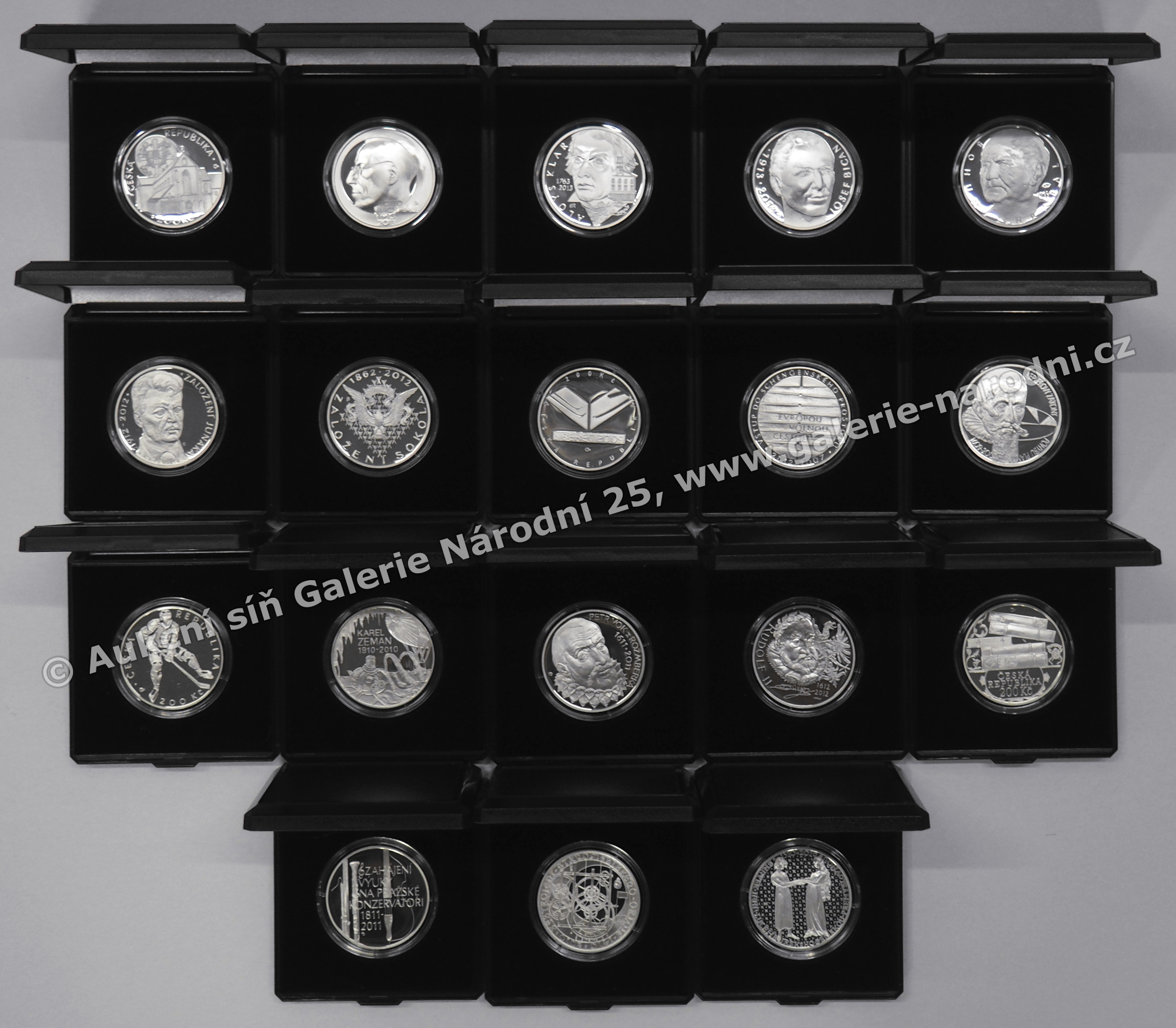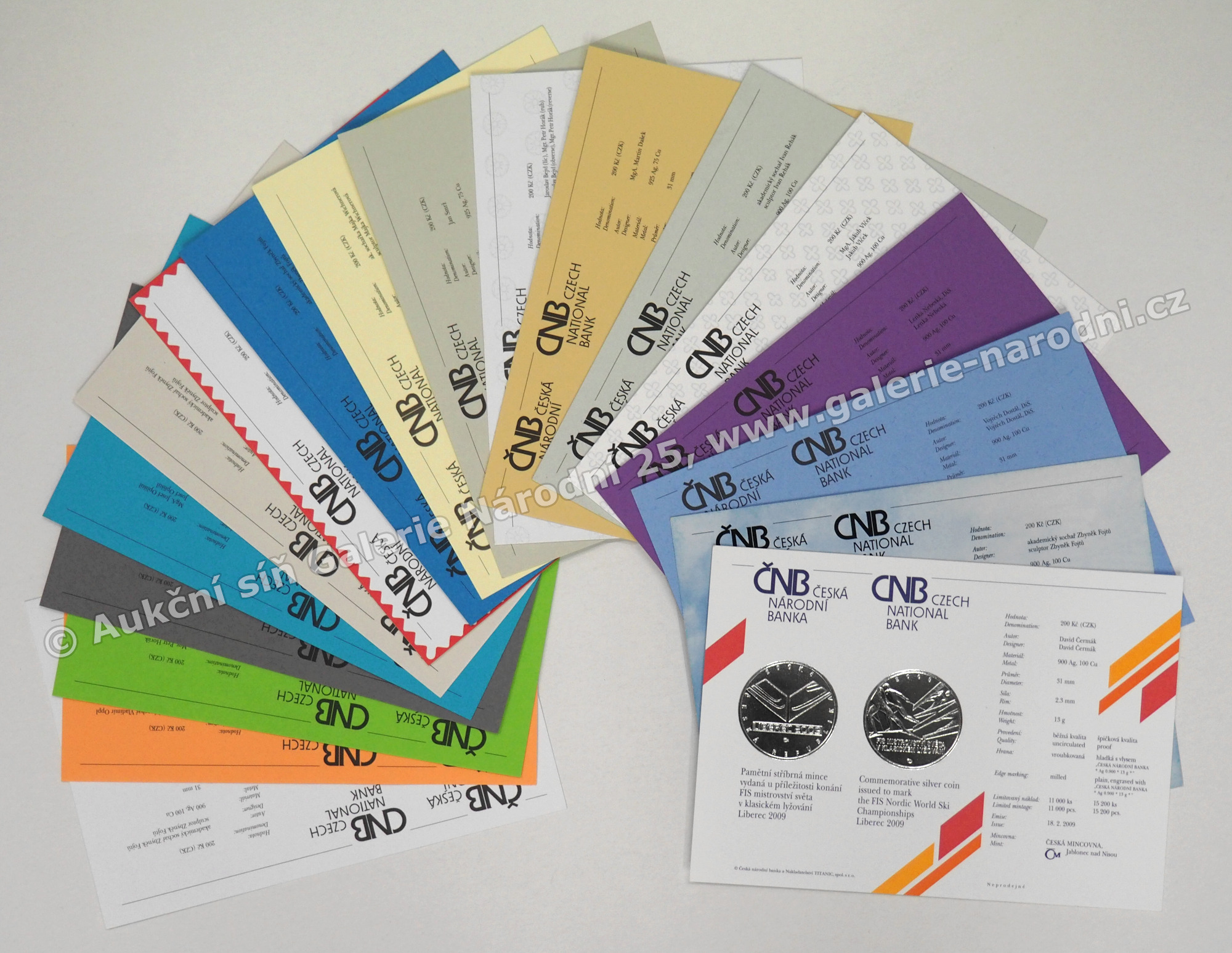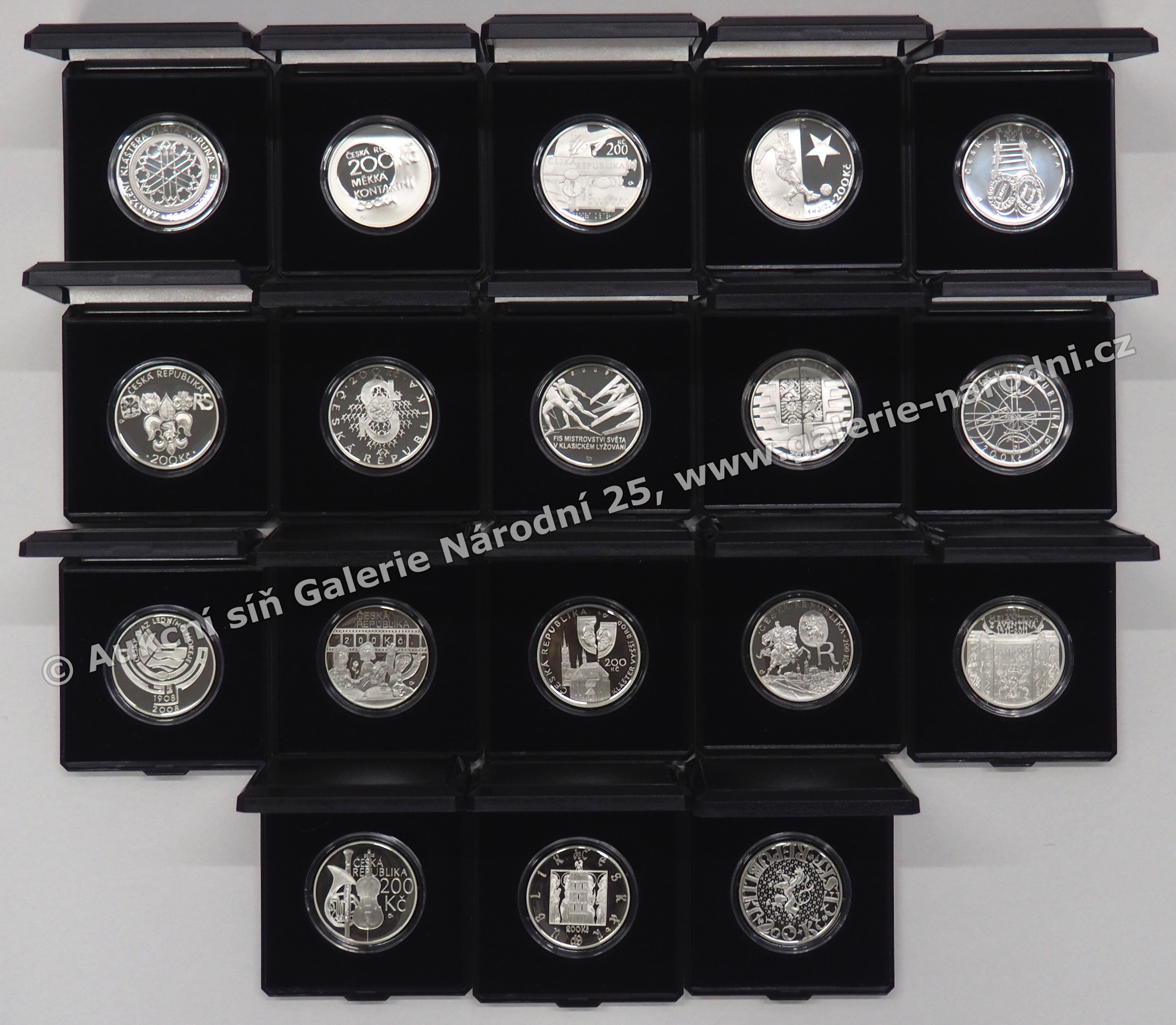 18x 200 Kč (Ag 925/1000, váha 13 g, průměr 31 mm), proof, přiloženy certifikáty