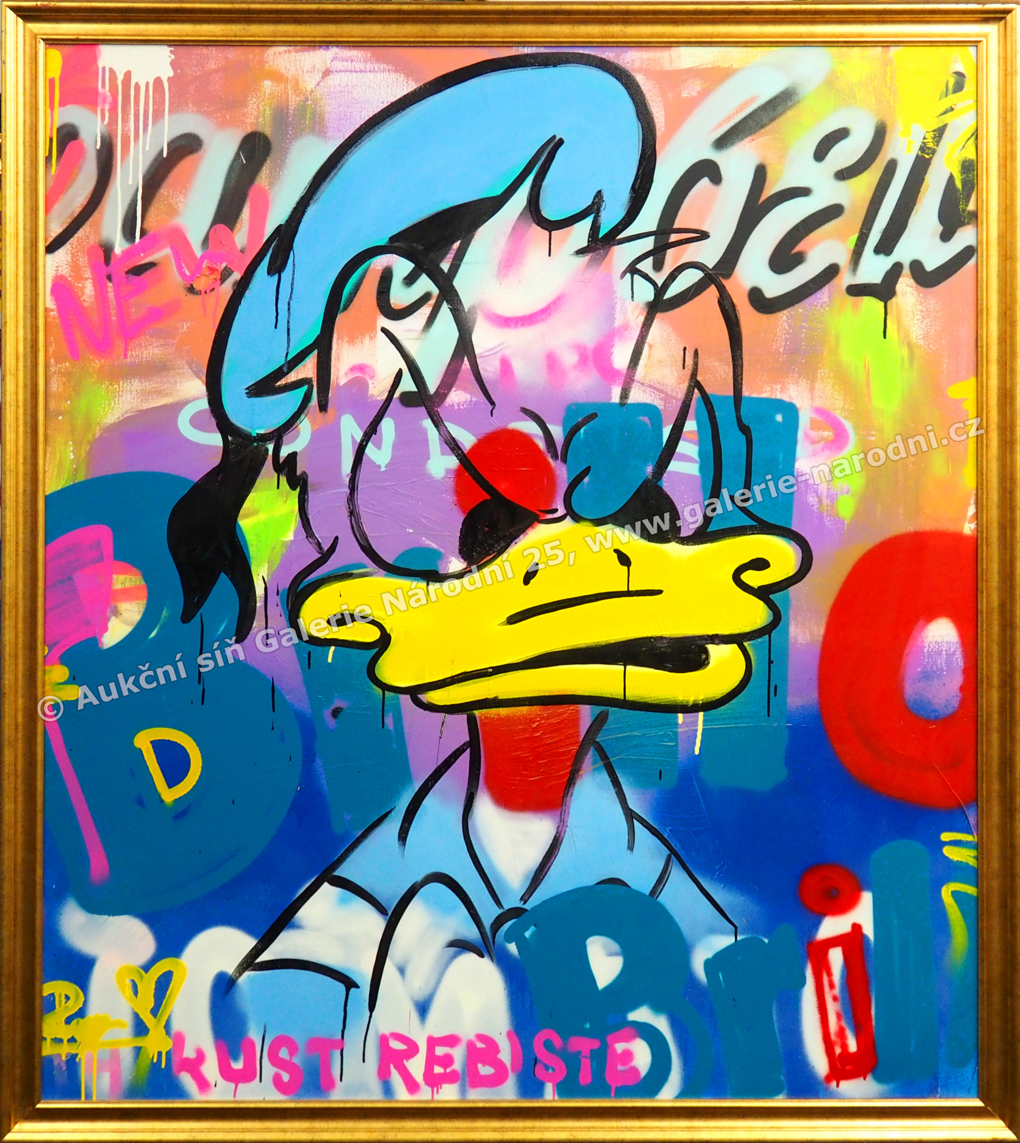 akryl-sprej na plátně, 150 x 130 cm, rámováno, signováno LD, datováno 2018, přiložen certifikát pravosti