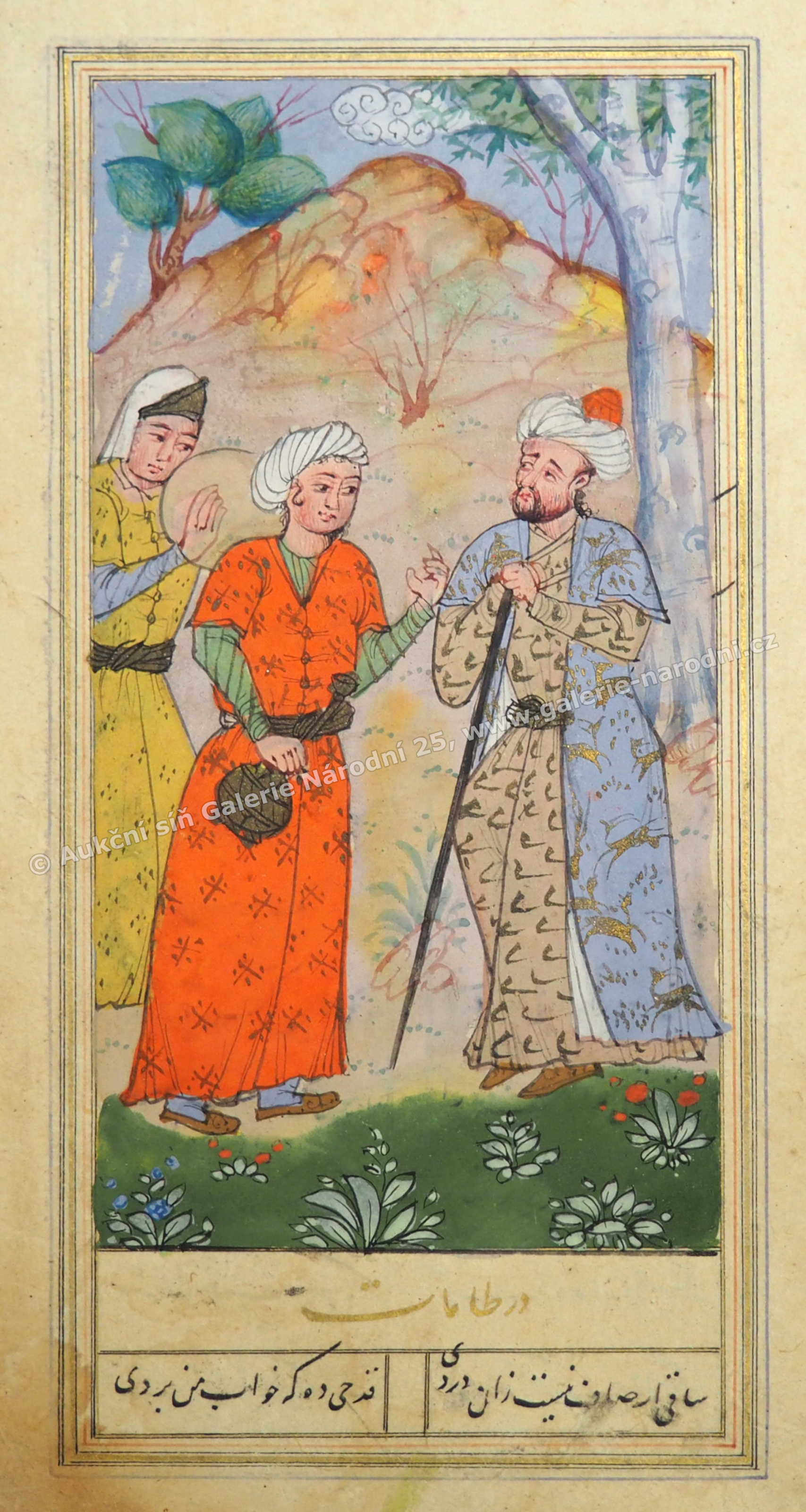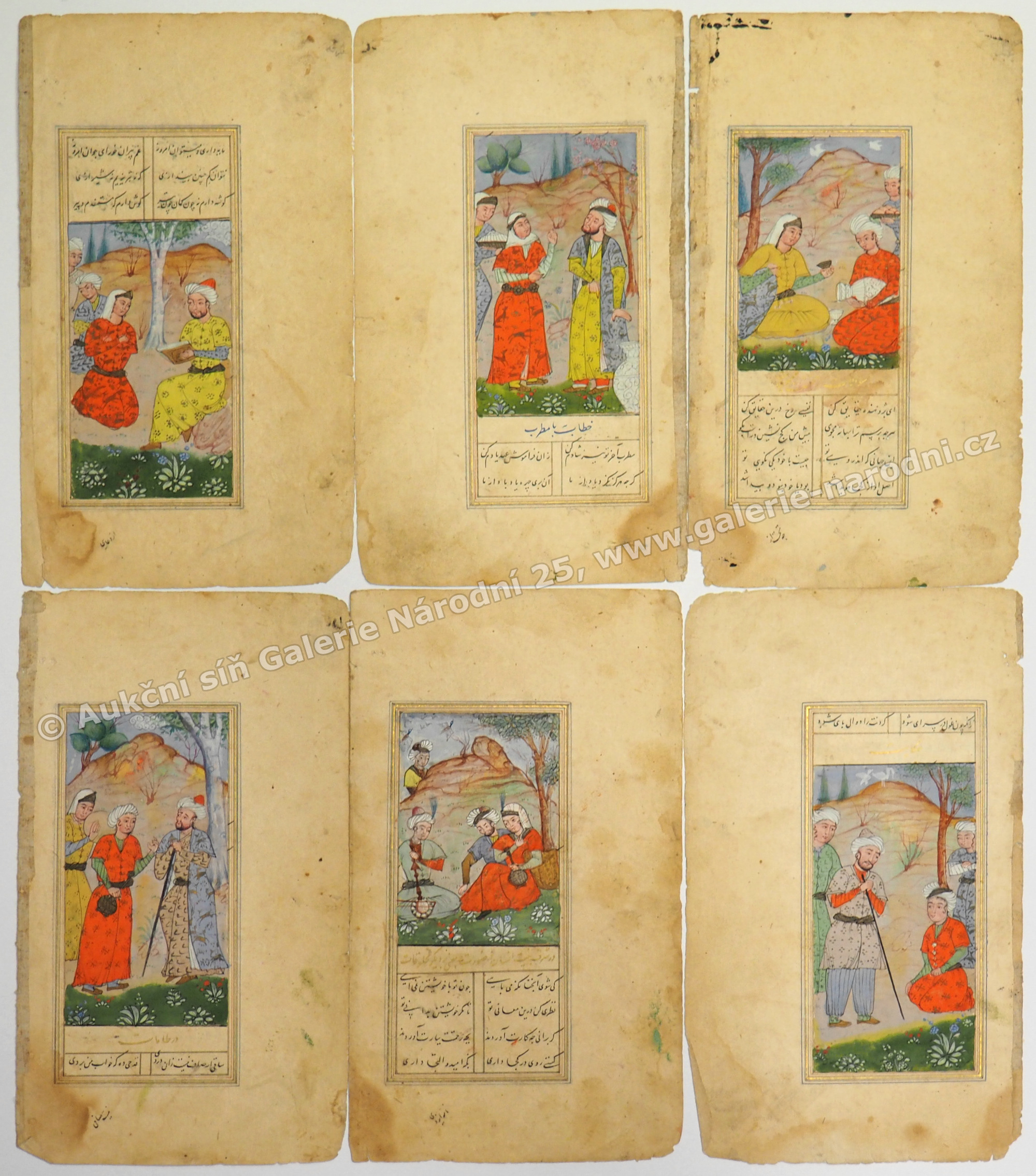 konvolut 6 ks akvarelů, ilustrace doprovázené poezií, rozměry á 21 x 12 cm, volně loženy, papír silně poškozen, 18. - 19. století