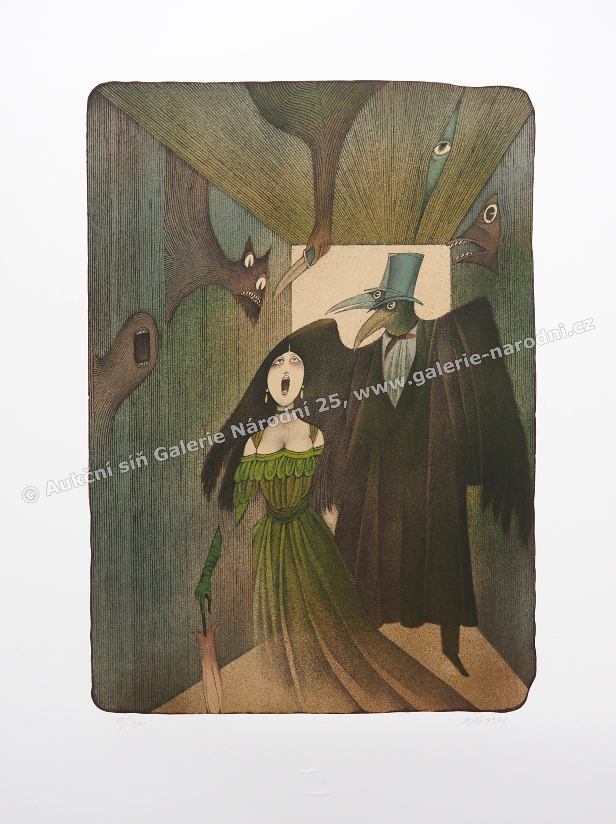 barevná litografie, 65 x 47 cm, volně loženo, signováno tužkou PD, 30/200 + lept, rozměry ve výřezu pasparty 8 x 6 cm, rámováno, signováno tužkou PD, 99/200, 2. pol. 20. století