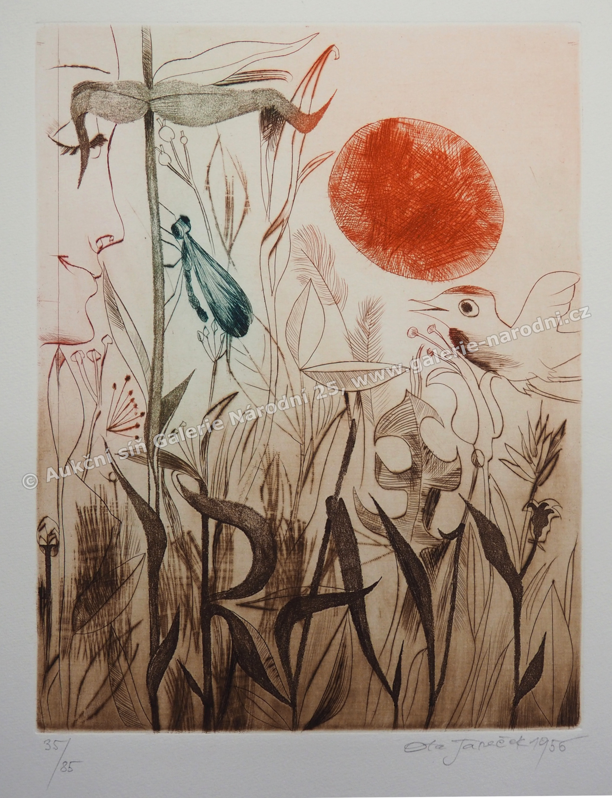 barevný lept, 53 x 42 cm, volně loženo, signováno tužkou PD, datováno 1956, 35/85