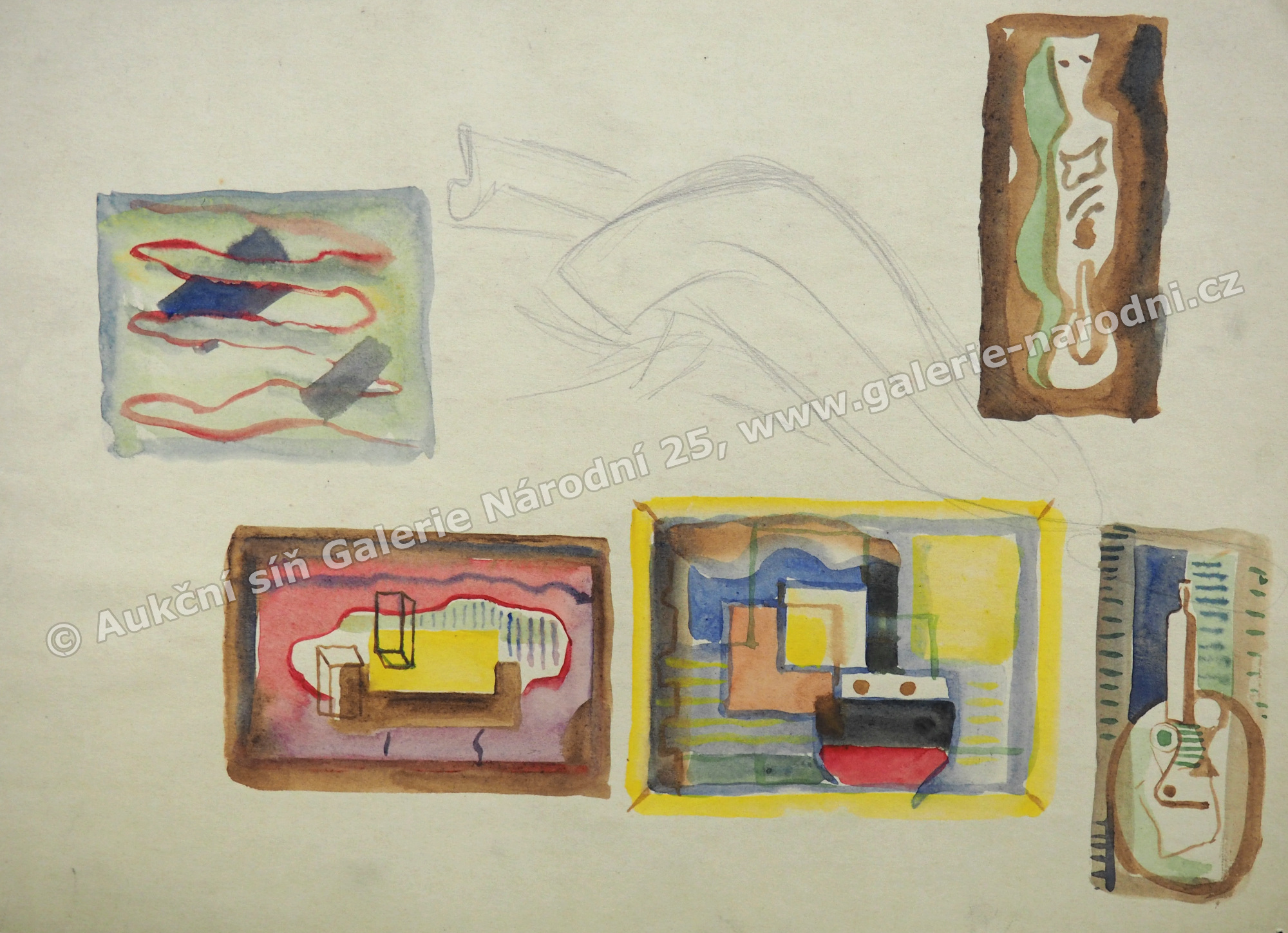 kombinovaná technika na papíře, 29 x 21 cm, volně loženo, papír na okrajích poškozen, nesignováno, pozůstalostní razítko autora