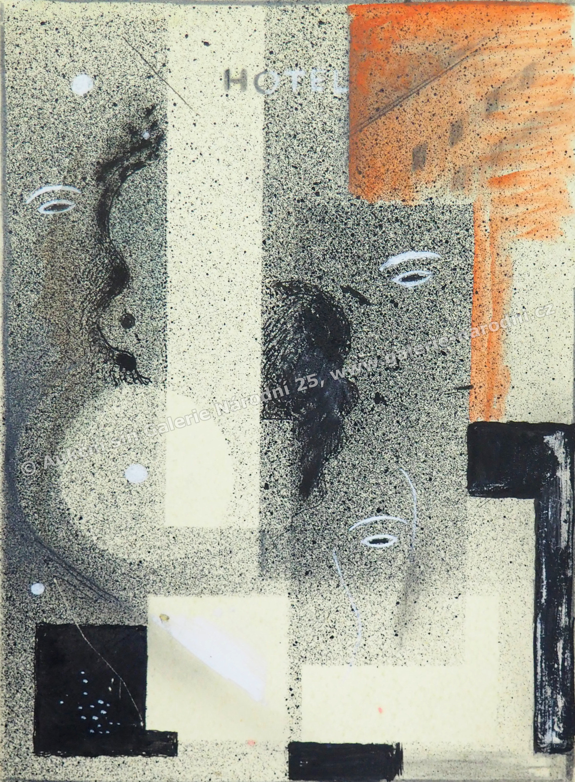 kombinovaná technika na papíře, 14 x 11 cm, volně loženo, papír mírně poškozen, nesignováno, pozůstalostní razítko autora