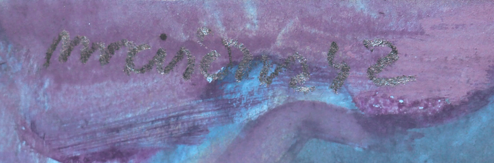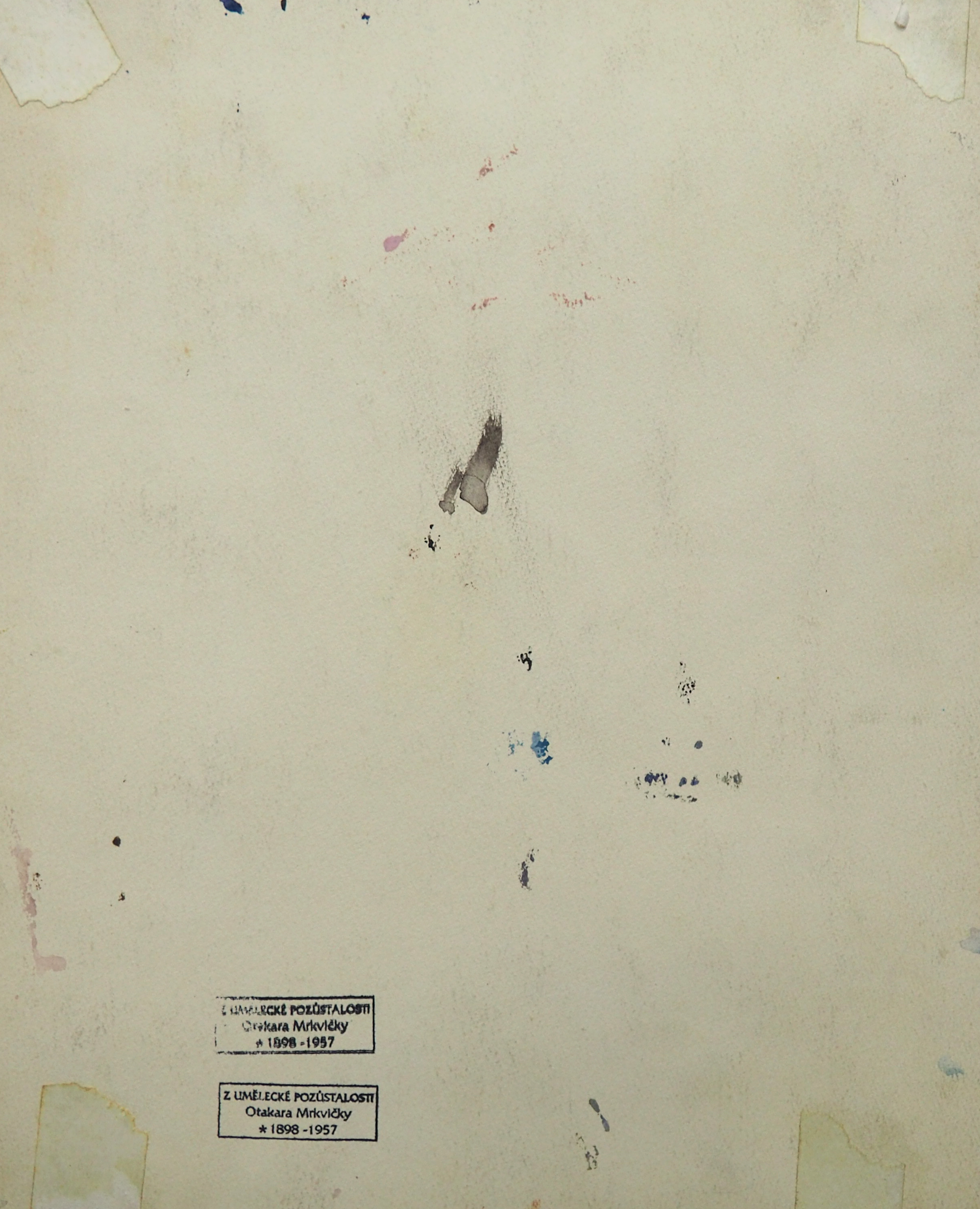 kombinovaná technika na tvrdém papíře, 28 x 22 cm, volně loženo, papír na okrajích místy poškozen, signováno LH, datováno 1942, pozůstalostní razítko autora