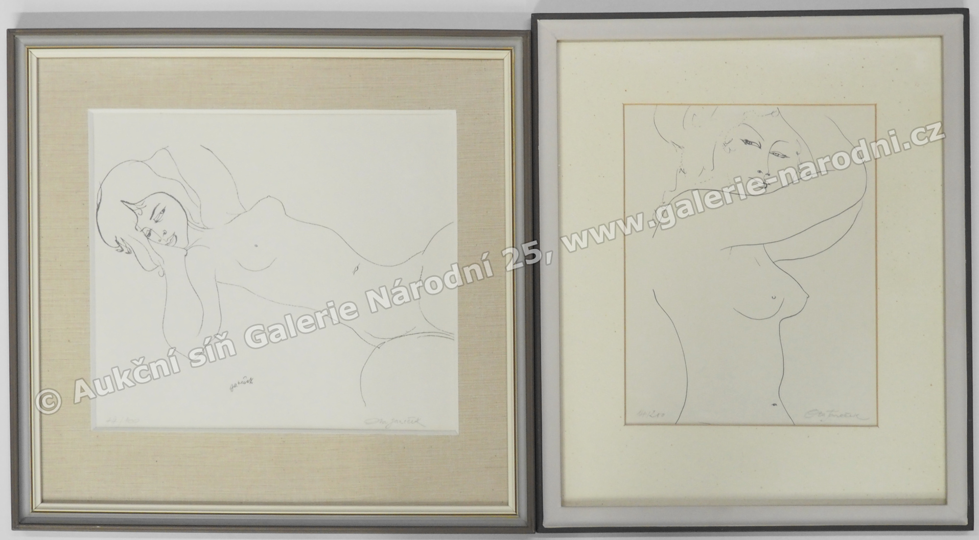 konvolut 2 ks litografií, rozměry ve výřezu pasparty 22 x 25 cm a 22 x 17, 5 cm, rámovány, zaskleny, pasparta, signovány, číslovány