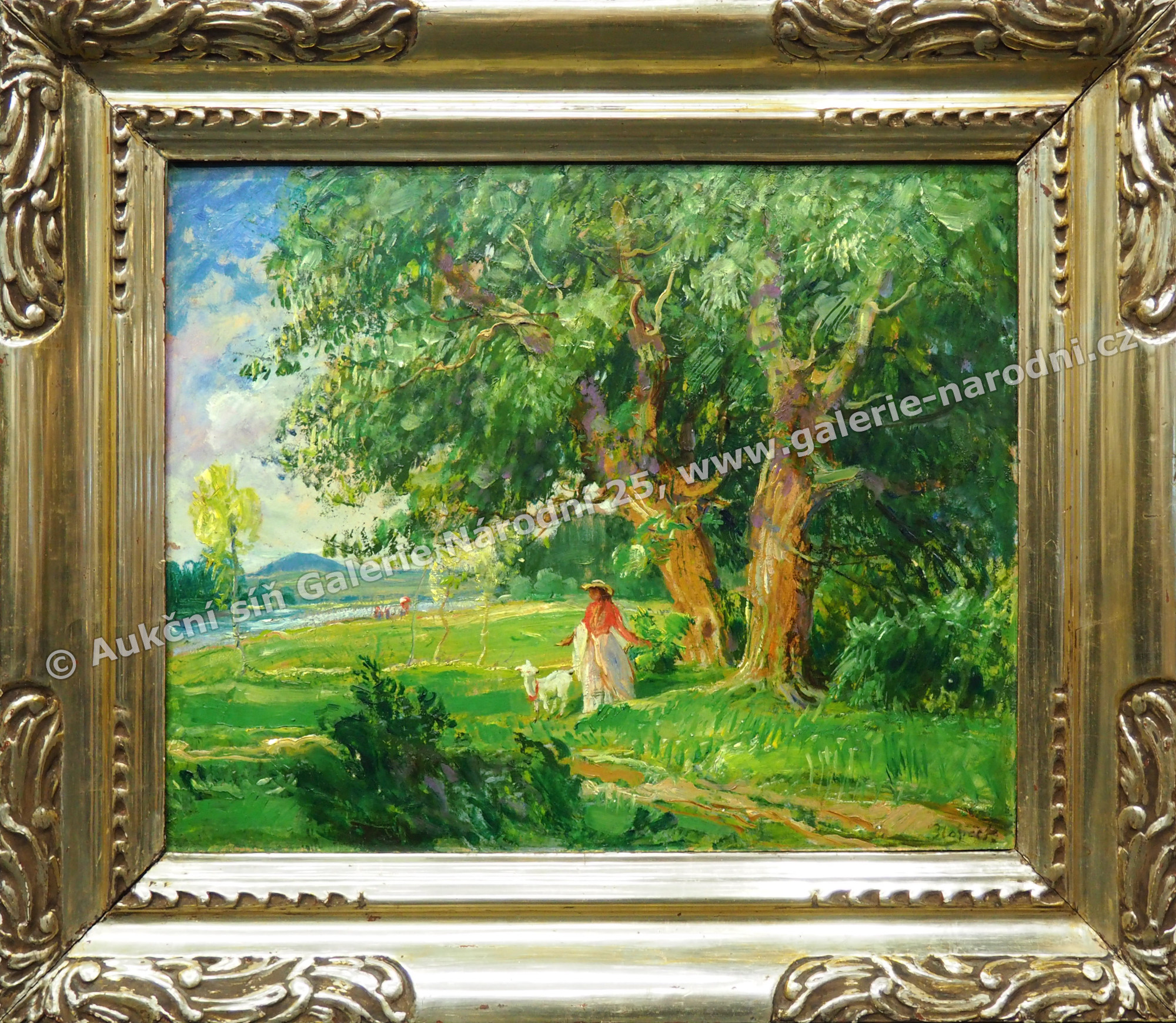 olej na kartonu, 38 x 48 cm, rámováno, rám a malba mírně poškozeny, signováno PD, datováno 1917-20, ověřovací certifikát pravosti díla přiložen