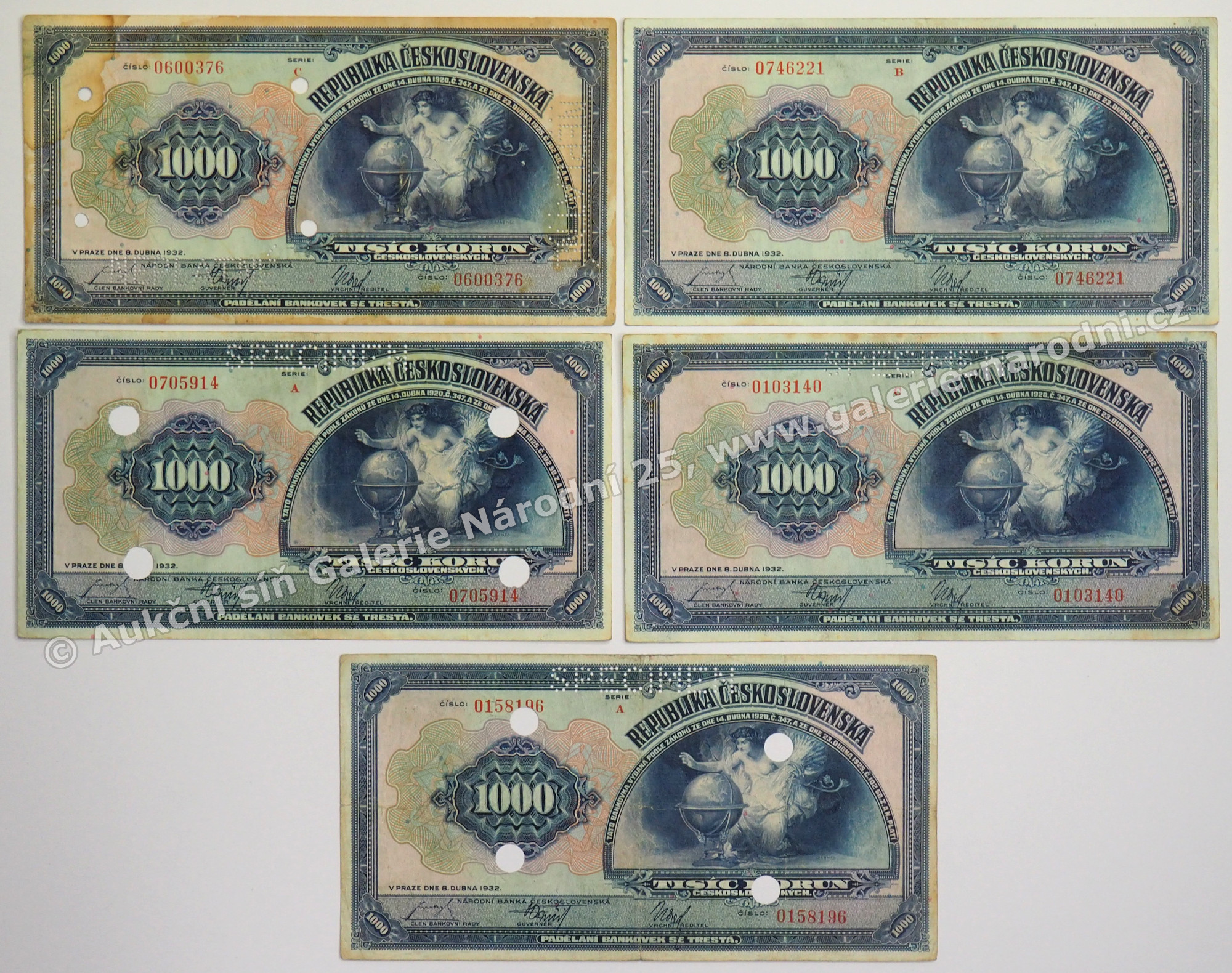 perforace S1, 2x S5, S7, 1x bez perforace, některé poškozeny