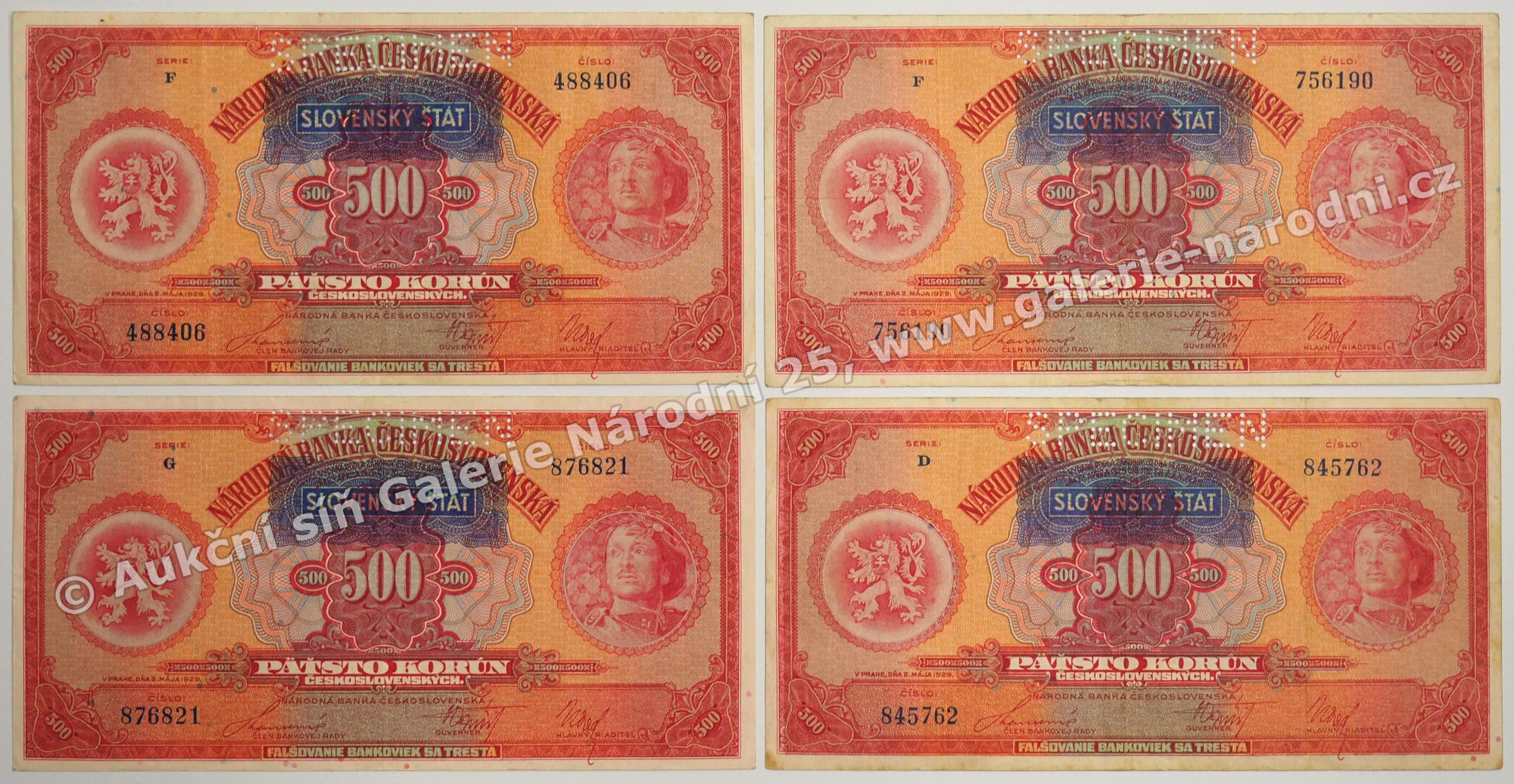 18694. 4x 500 Ks/Kč 1929 (přetisk 1939)