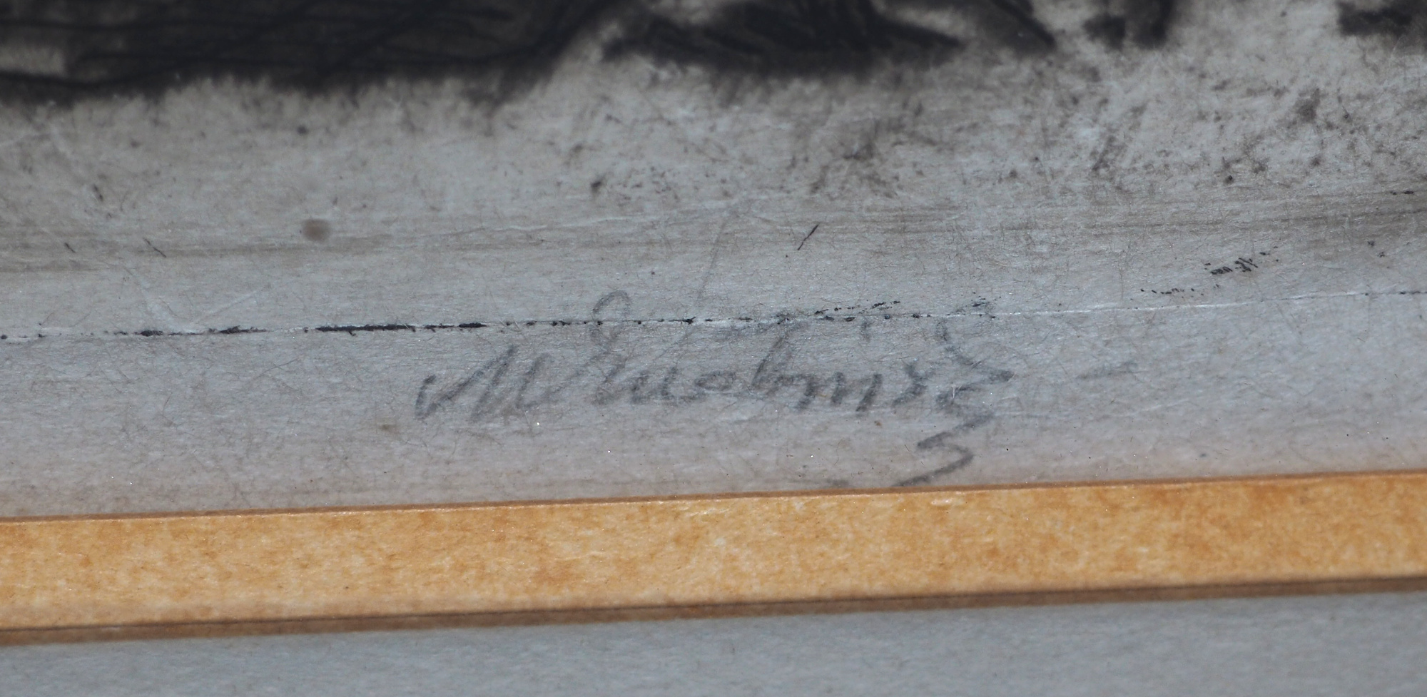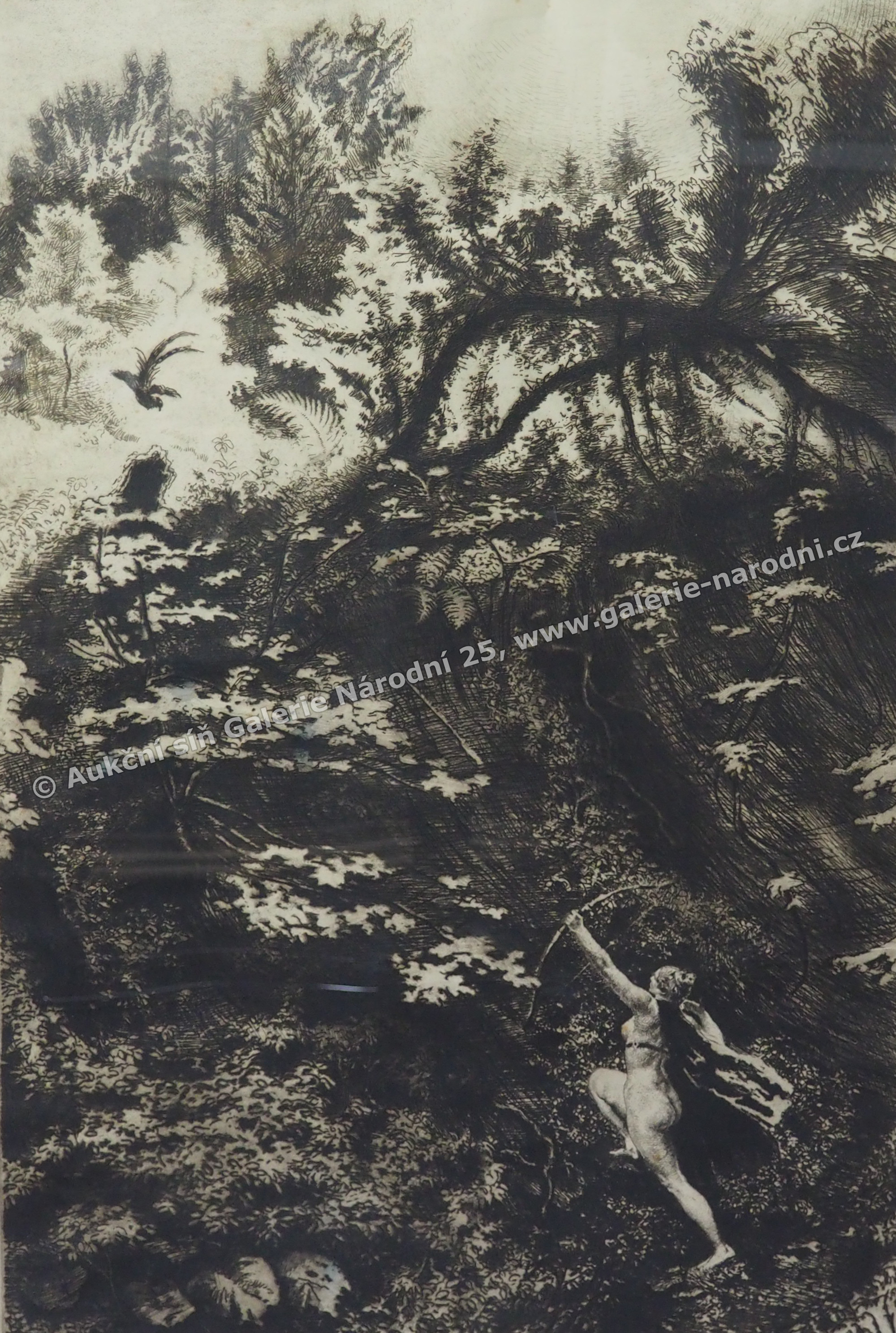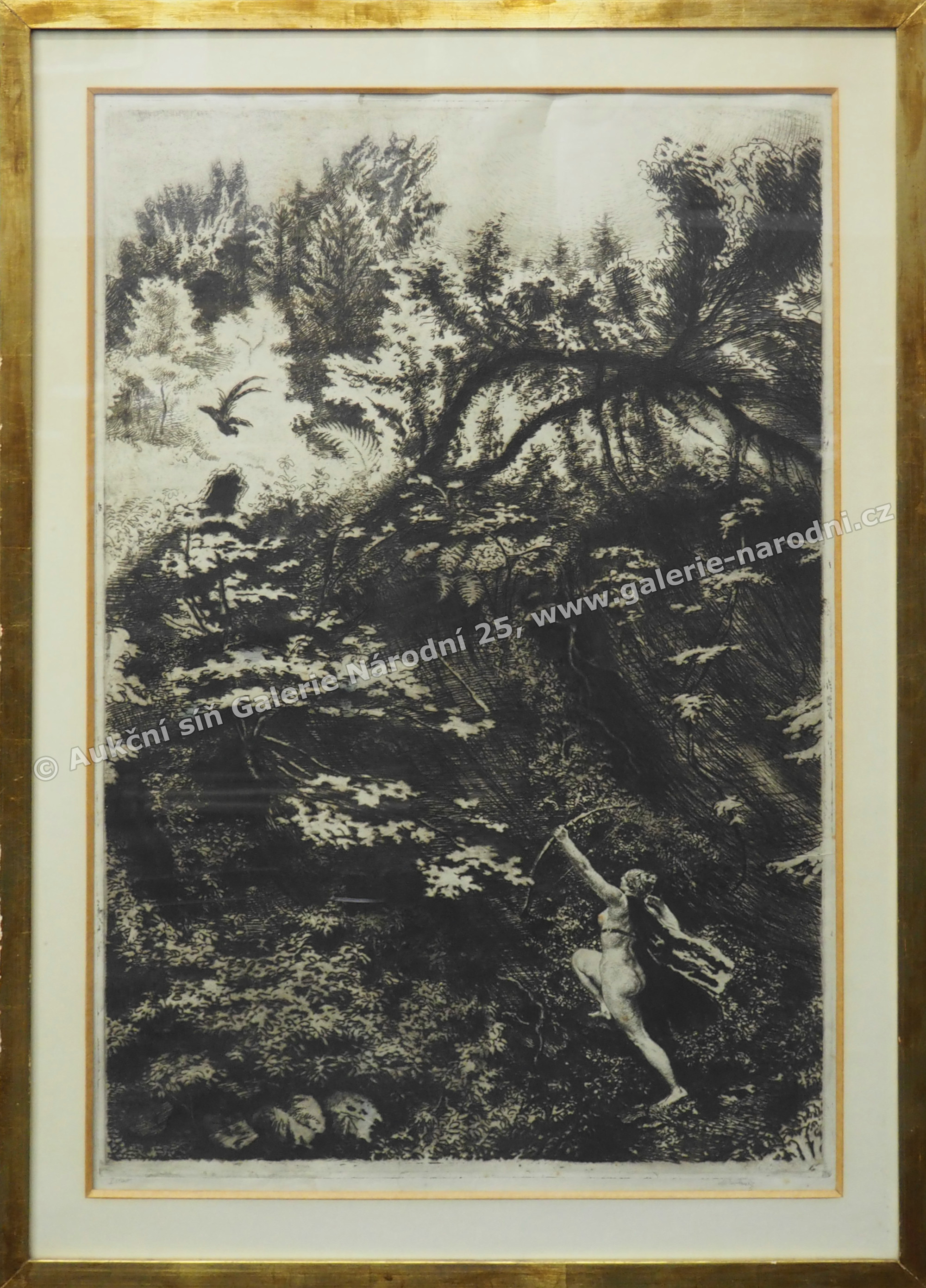 lept na papíře, rozměry ve výřezu pasparty 87 x 58 cm, rámováno, zaskleno, pasparta, rám mírně poškozen, papír místy poškozen, signováno tužkou PD, I. stav, 1. pol. 20. století