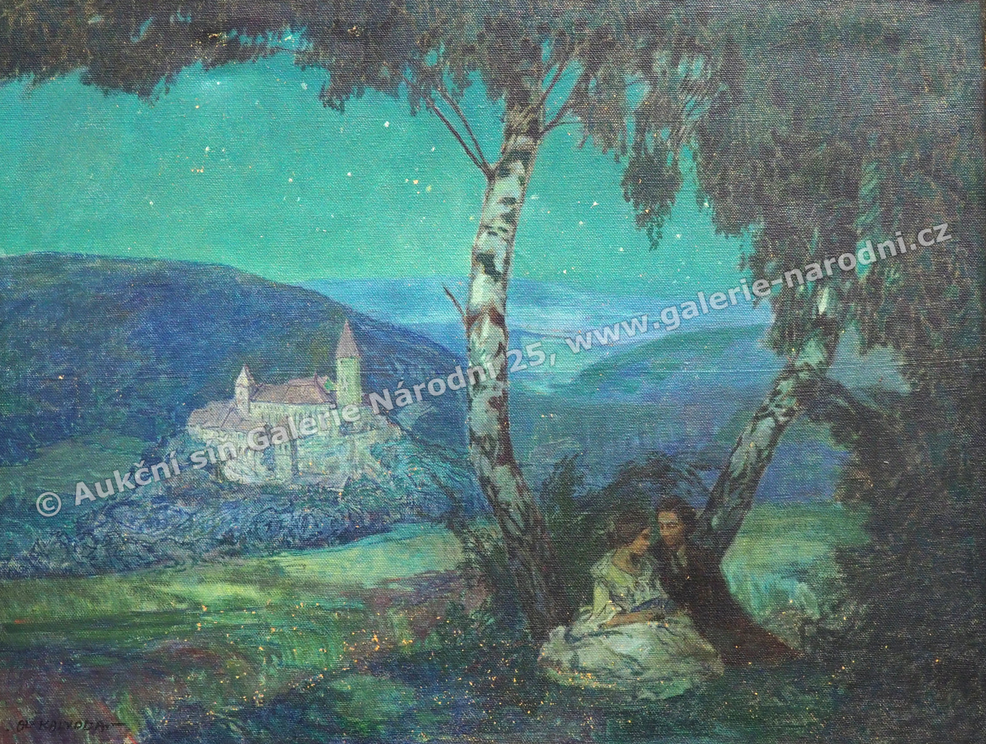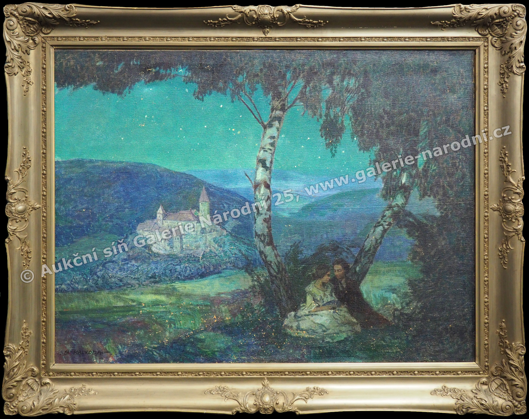 olej na plátně, 72 x 96 cm, rámováno, rám a malba místy poškozeny, plátno vlevo nahoře mírně vybouleno, malba v dolní části místy mírně odpadlá, signováno LD, okolo roku 1905-1910, ověřovací certifikát pravosti díla přiložen