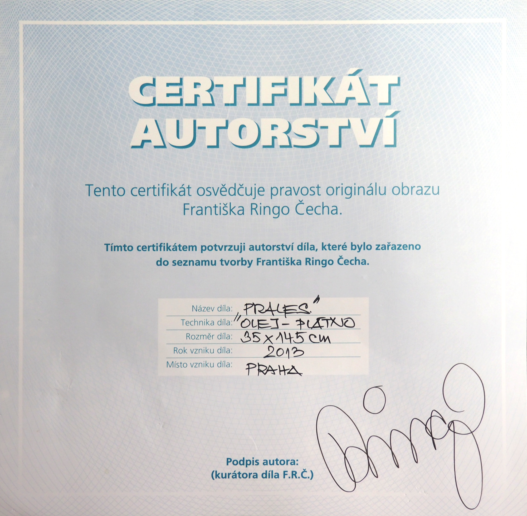 olej na plátně, 35 x 145 cm, rámováno, signováno LH, datováno 2013, přiložen certifikát autorství