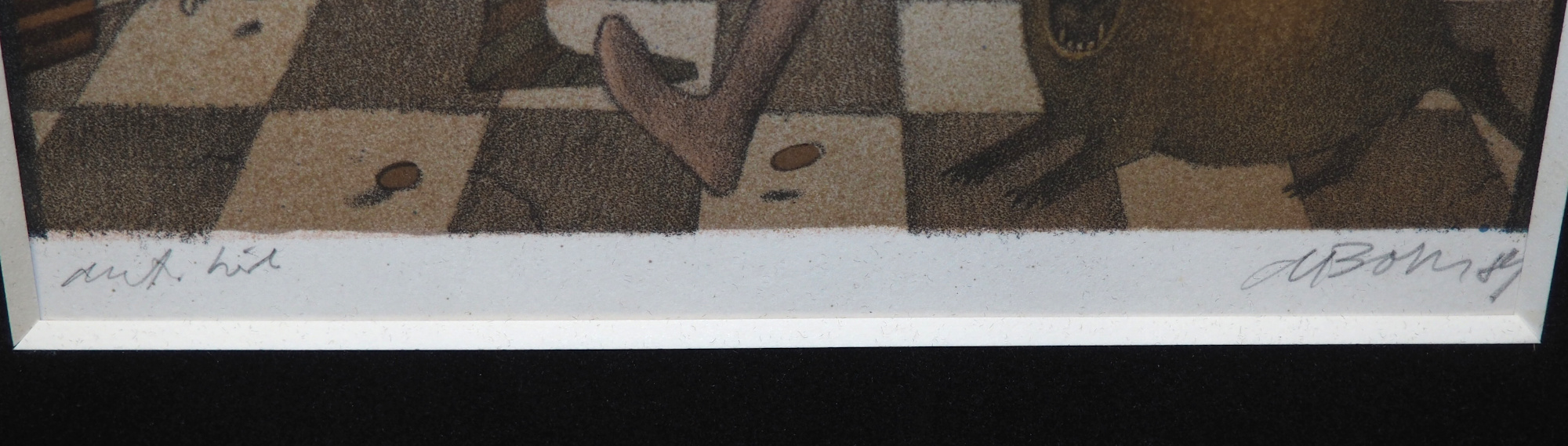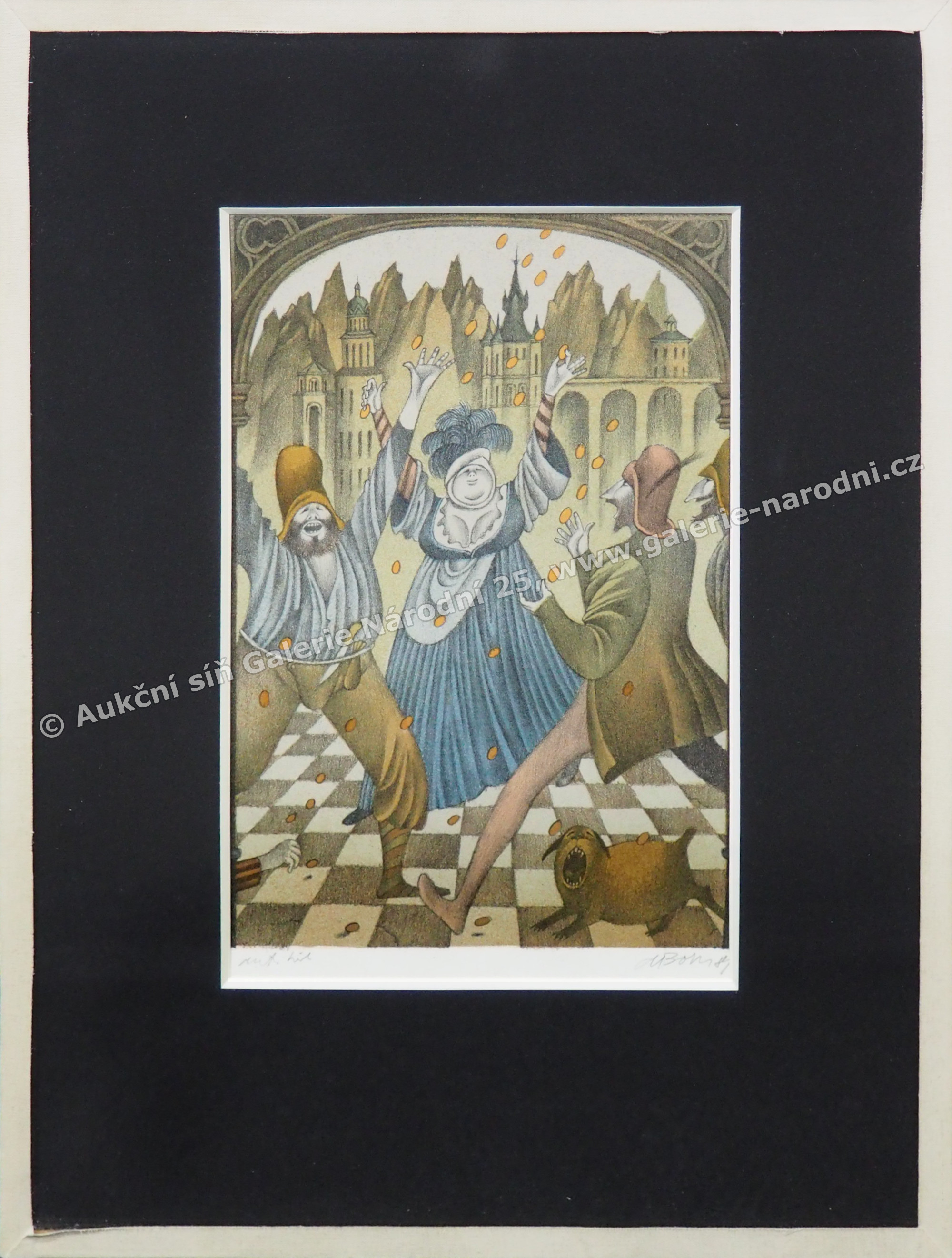 barevná litografie, rozměry ve výřezu pasparty 29 x 18, 5 cm, zaskleno, pasparta, signováno tužkou PD, autorský tisk