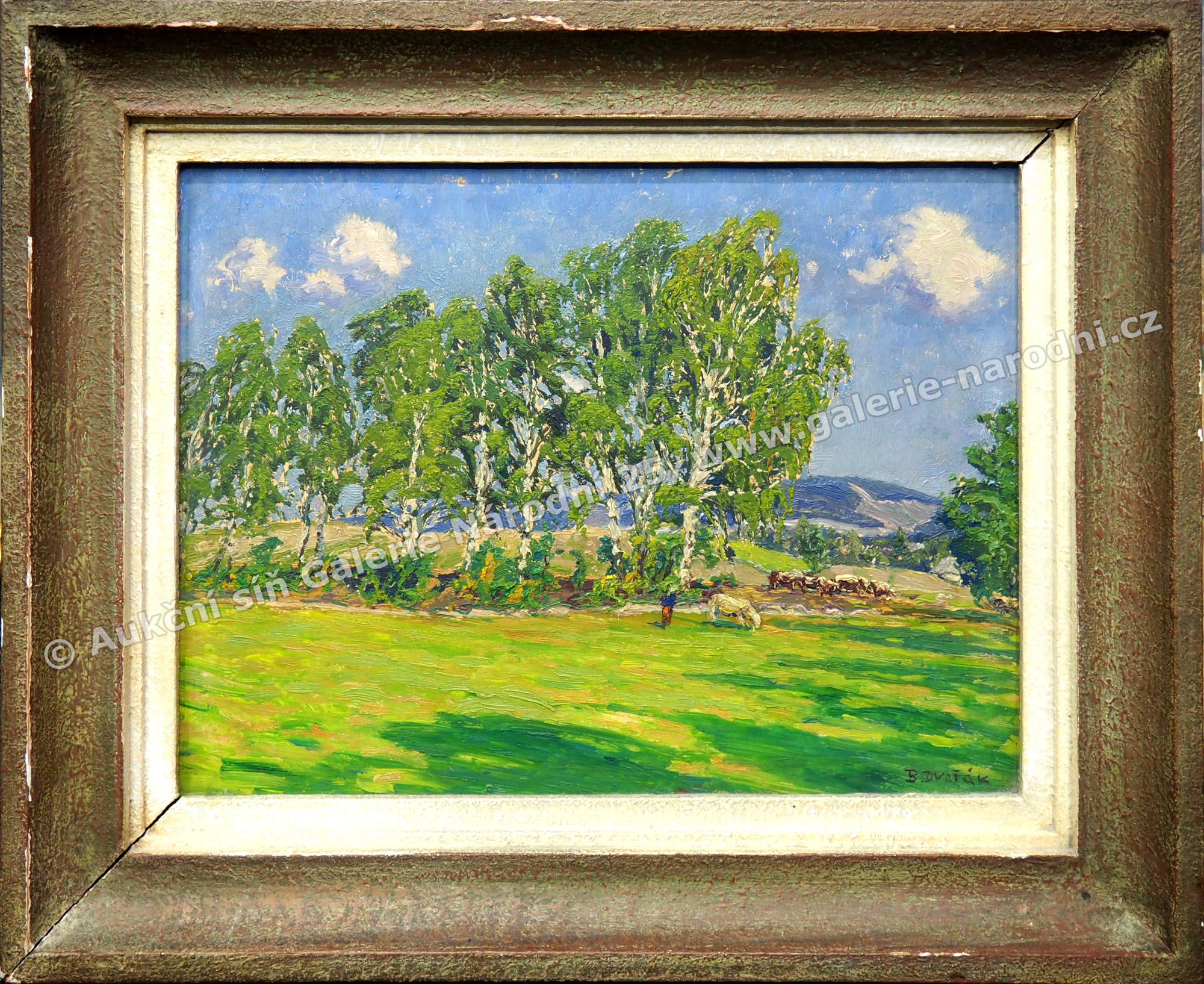 olej na kartonu, 24 x 32 cm, rámováno, rám a malba mírně poškozeny, signováno PD, 1. pol. 20. století, ověřovací certifikát pravosti díla přiložen